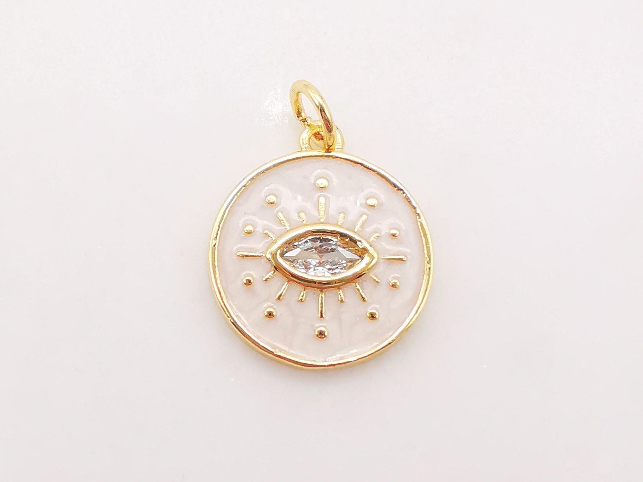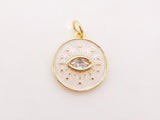Enamel Cubic Evil Eye Charm, 18K Gold Plated Micro CZ Pave Round Pendant, 15mm, Necklace Making Charm, Jewelry Findings S128