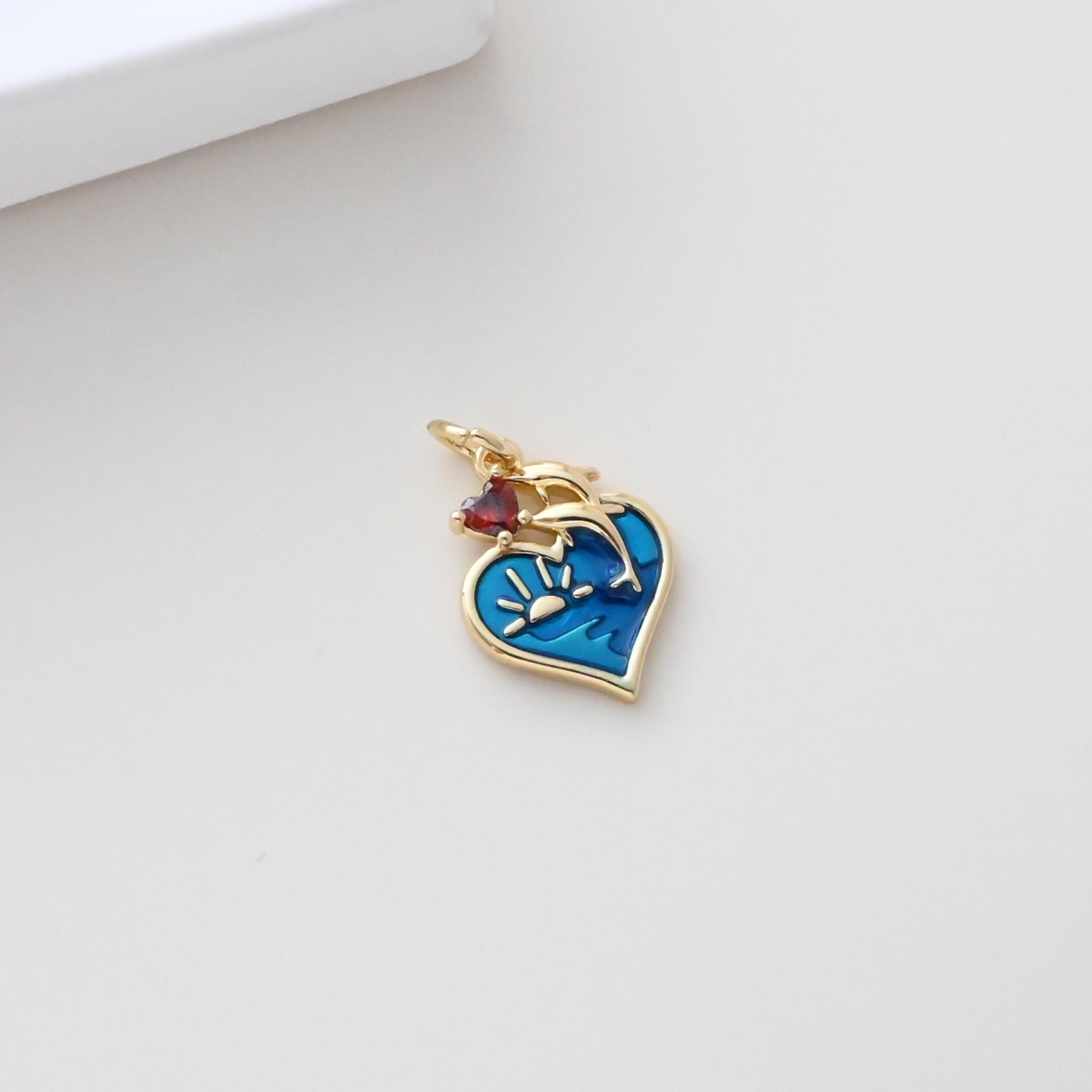 Enamel Heart Charm, 18K Gold Plated Heart Pendant, 10mm, Necklace Bracelet Making Pendant S1310