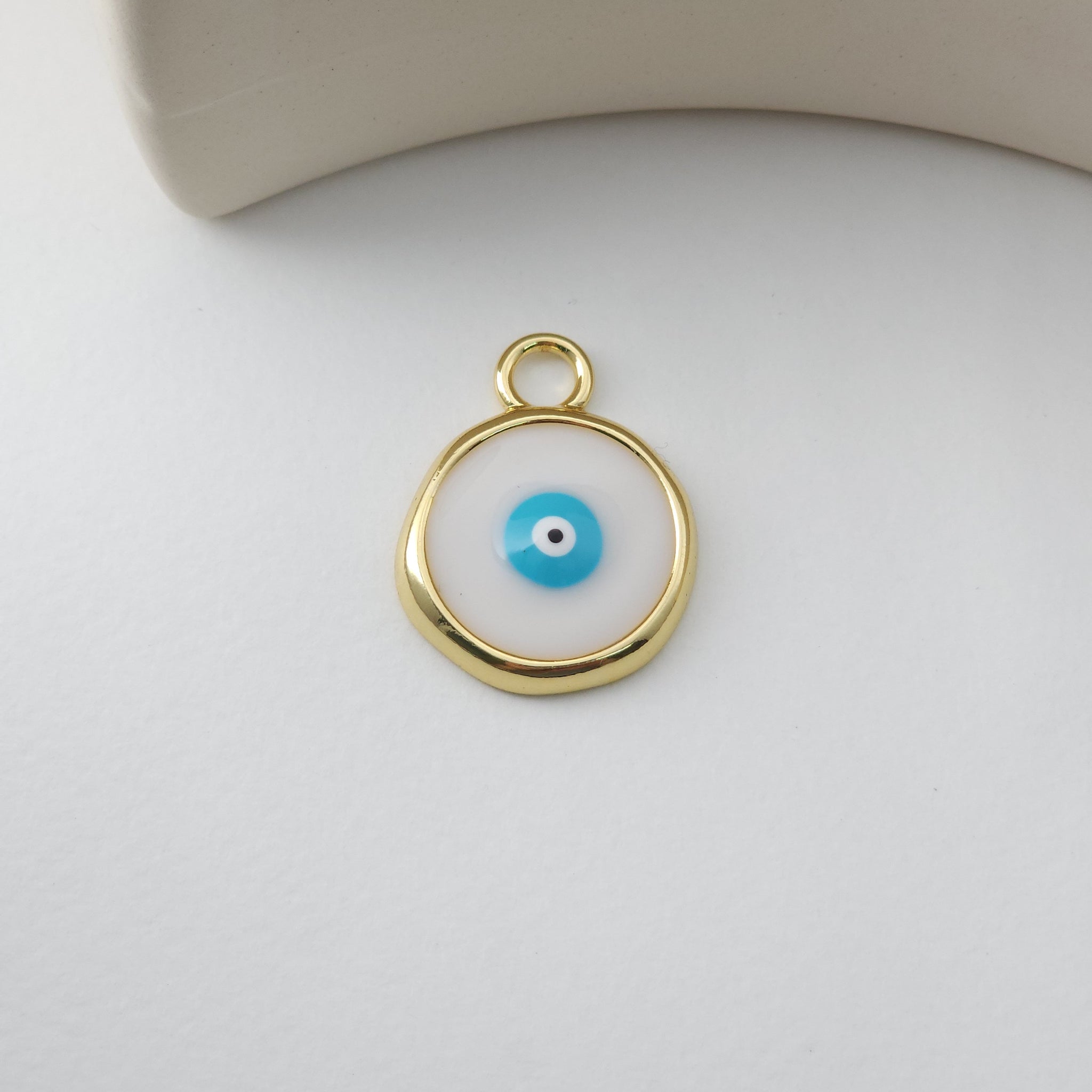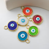 Enamel Multicoloured Evil Eye Charm, 18K Gold Plated Round Pendant, 20mm, Necklace Making Charm, Jewelry Findings S1231