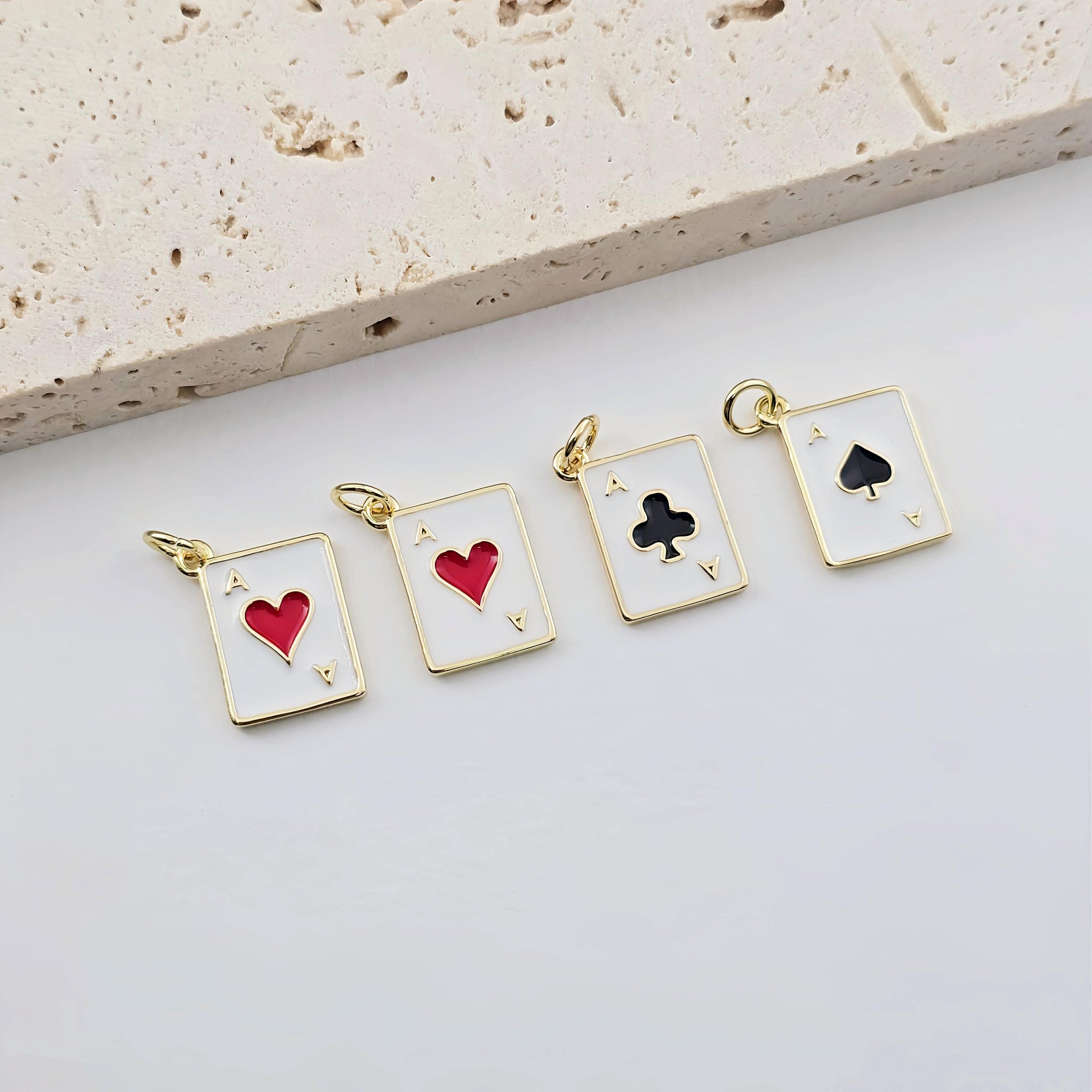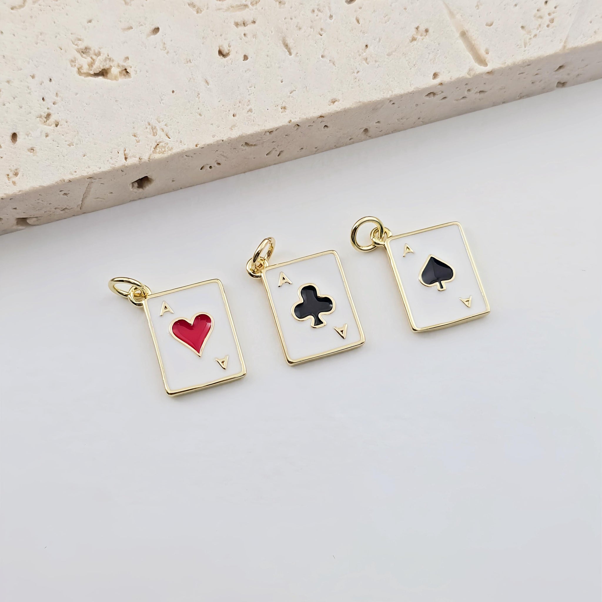 Enamel Poker Pendant, 18K Gold Plated, Necklace Making Charms, Jewelry Findings S1287