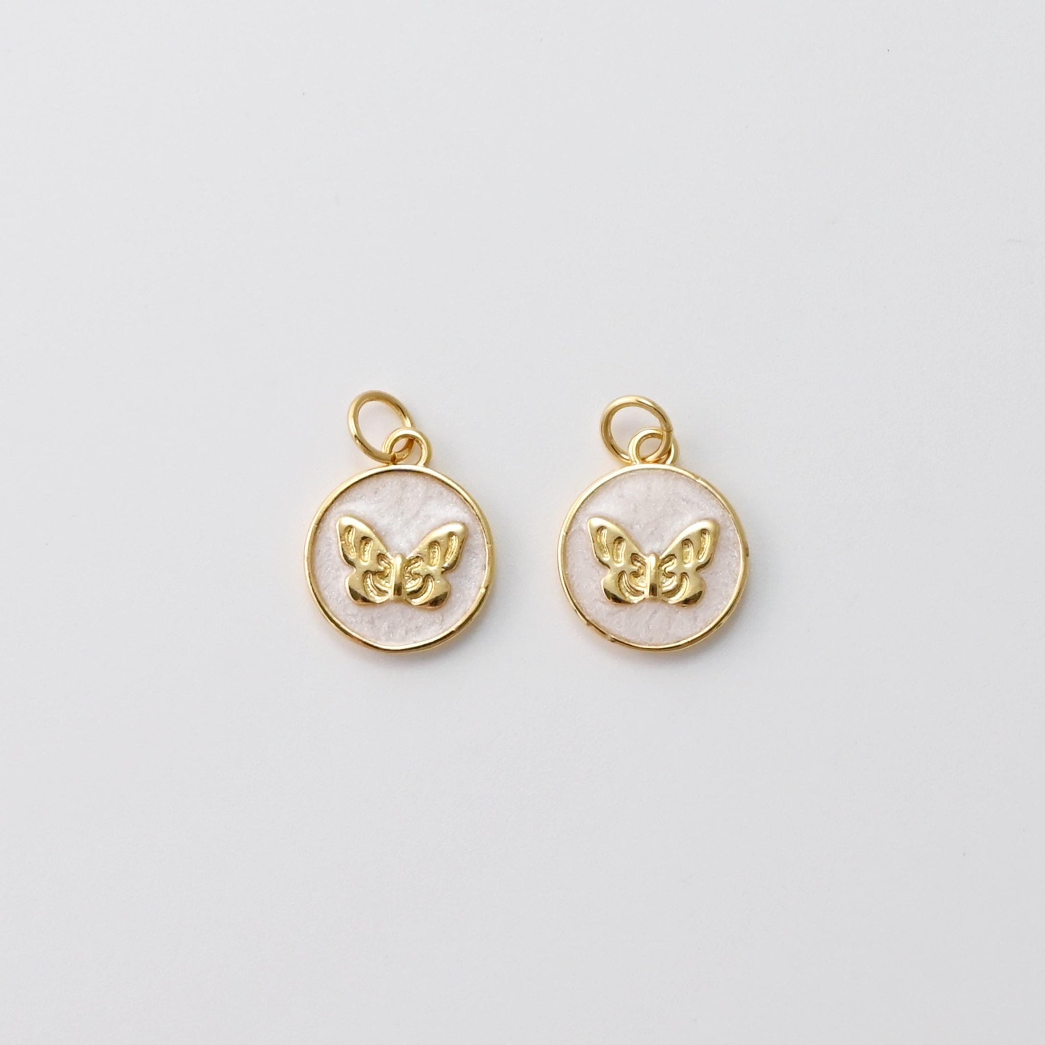 Enamel Round Pendant, Butterfly Charms, 18K Gold Plated Circle Charms, For Bracelet And Necklace Making, Jewelry Findings S1431