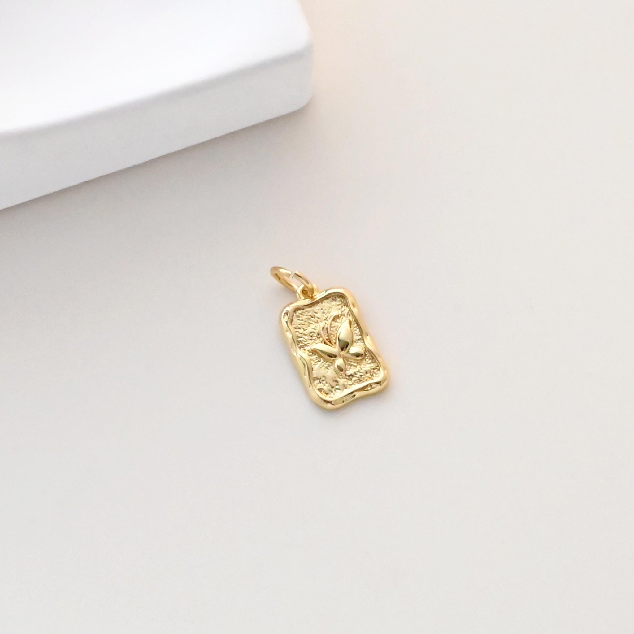 Flower Charm On Oval Shape, 18K Gold Plated, Rectangular Flower Pendant, Necklace Earring Making Charms, Jewelry Findings S1326