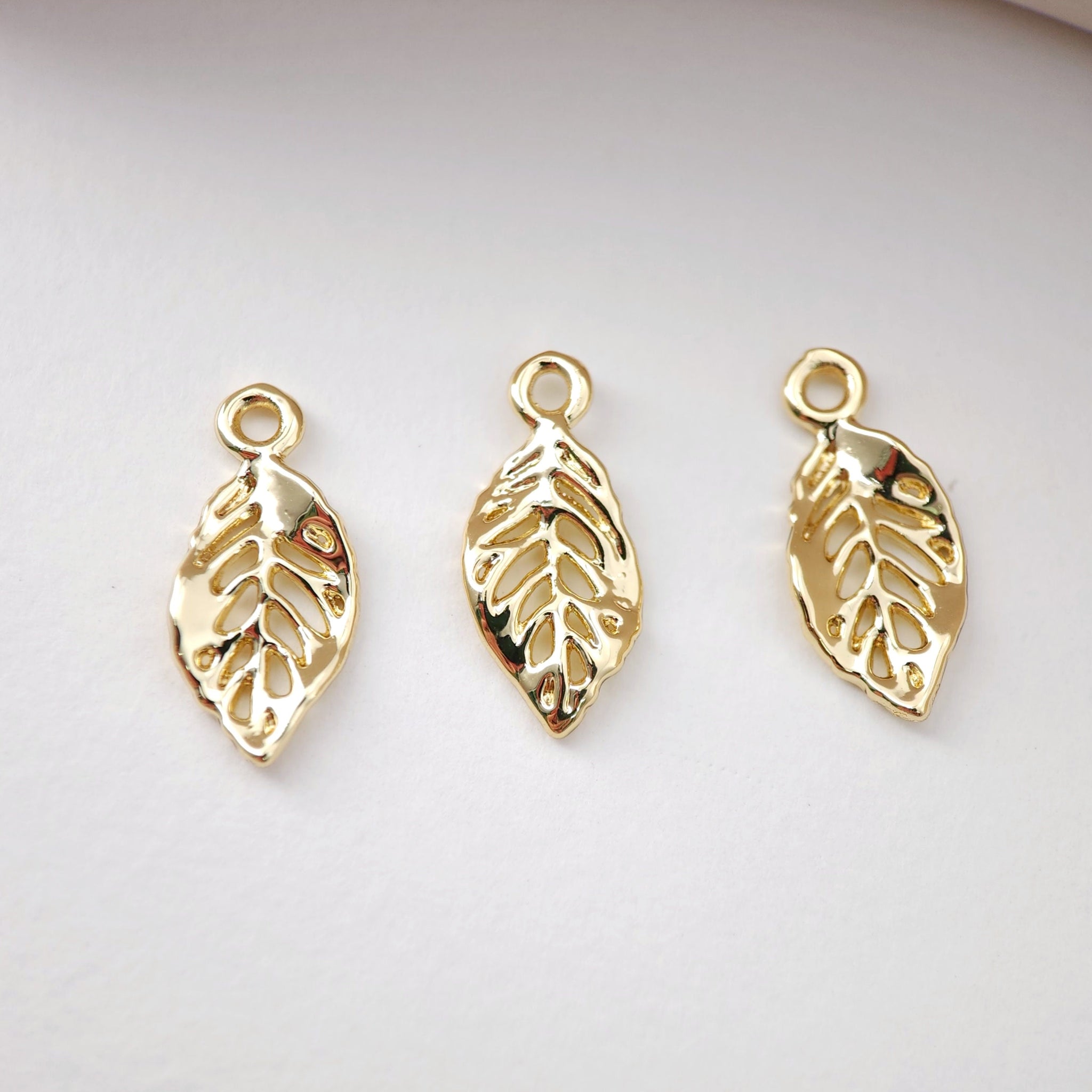 Gold Leaf Charm, 18K Real Gold Plated Brass Earring Charms, Jewelry Findings D0081