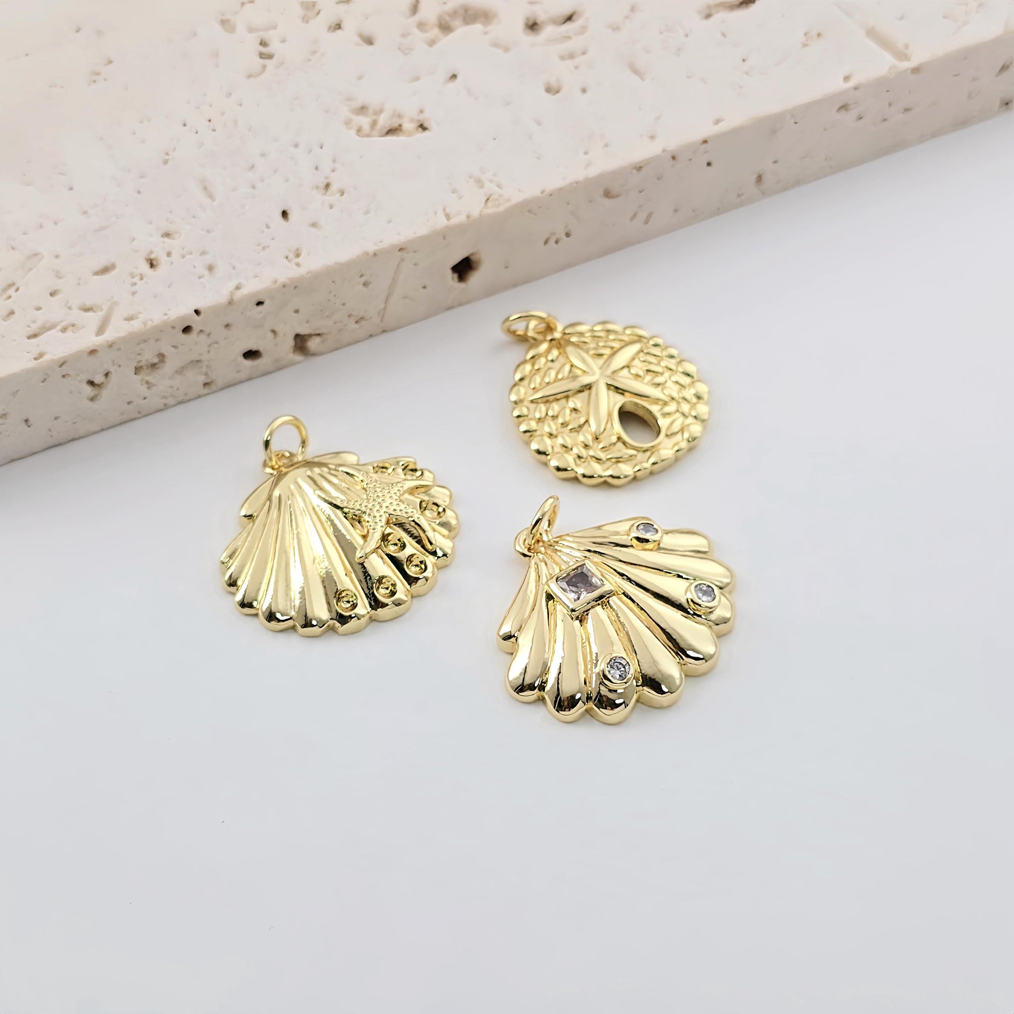 Gold Seashell Charm, Marine Life Pendant, 20mm, 18k Gold Plated Brass, Bracelet Making, Jewelry Findings S1270Quantity:...