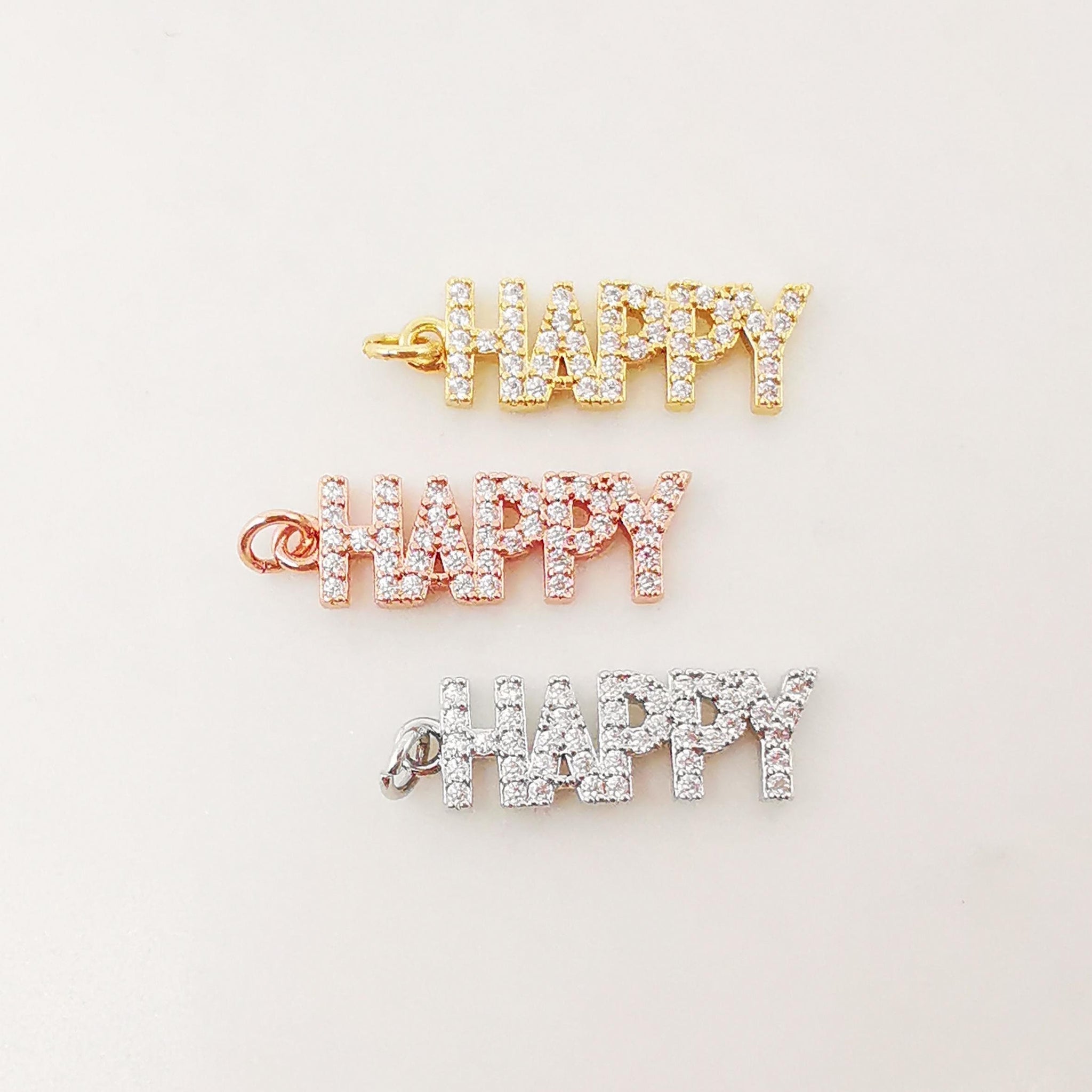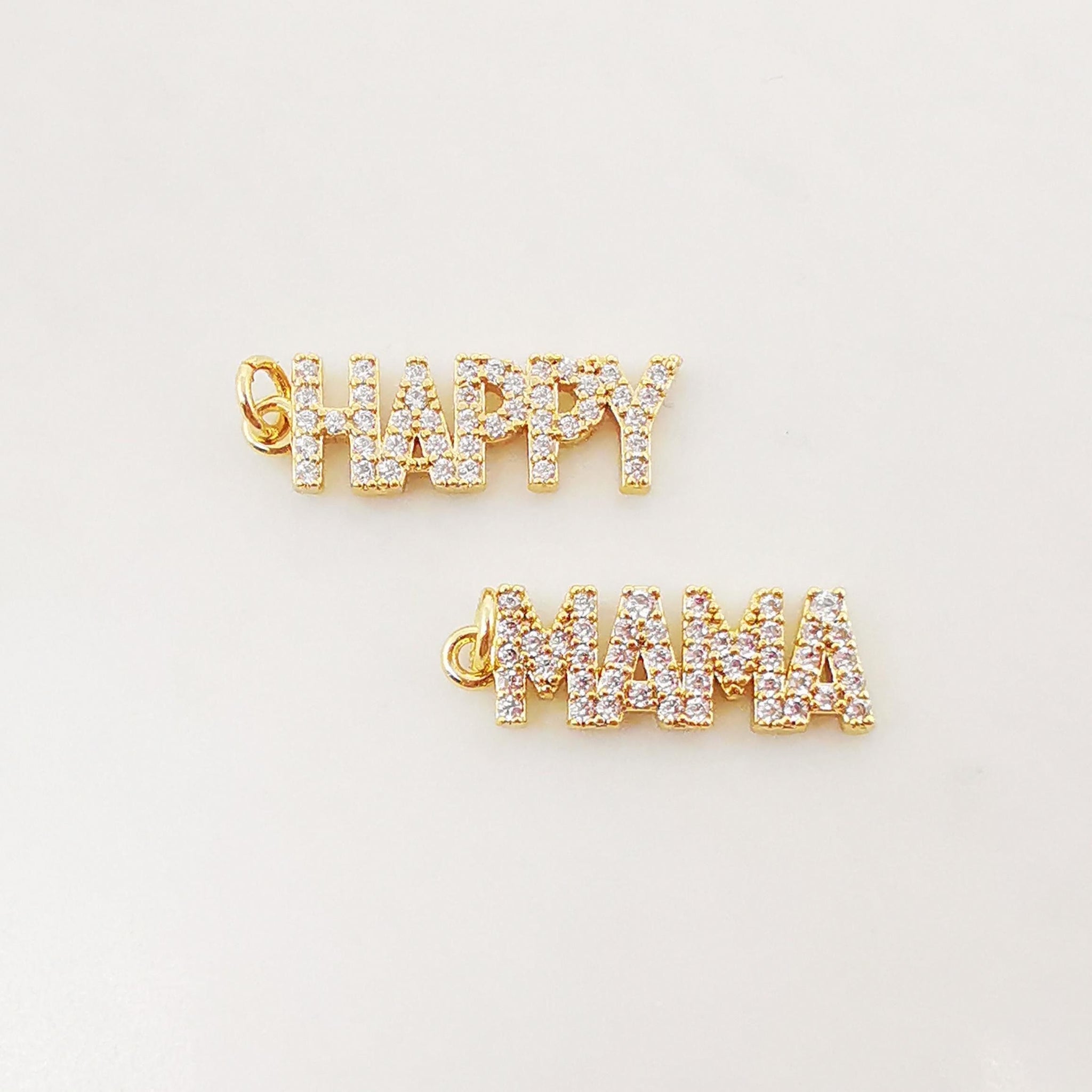 HomeCharms & PendantsHAPPY/MAMA Pave Charm, 18K Gold Plated Pendant, Necklace Making Charm, CZ Pave letter pendant for mother, Jewelry making Supplies, S1029