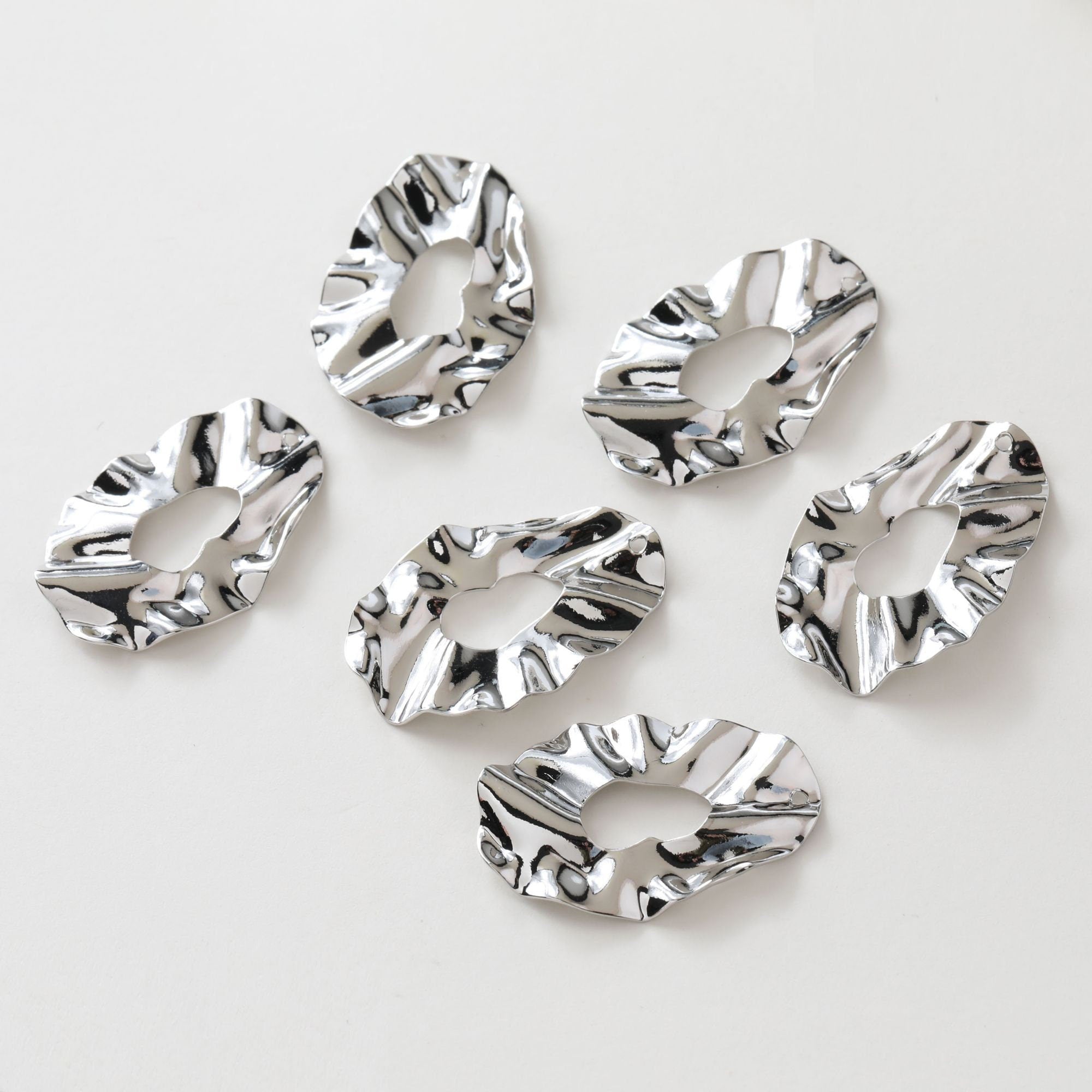 Irregular Pleated Openwork Pendant, 14K Gold/Silver, Oval Charm, Earring Making Finding ZZ093Quantity: 2pcs/ 10pcsSize: 23*34mmColor: 14K...