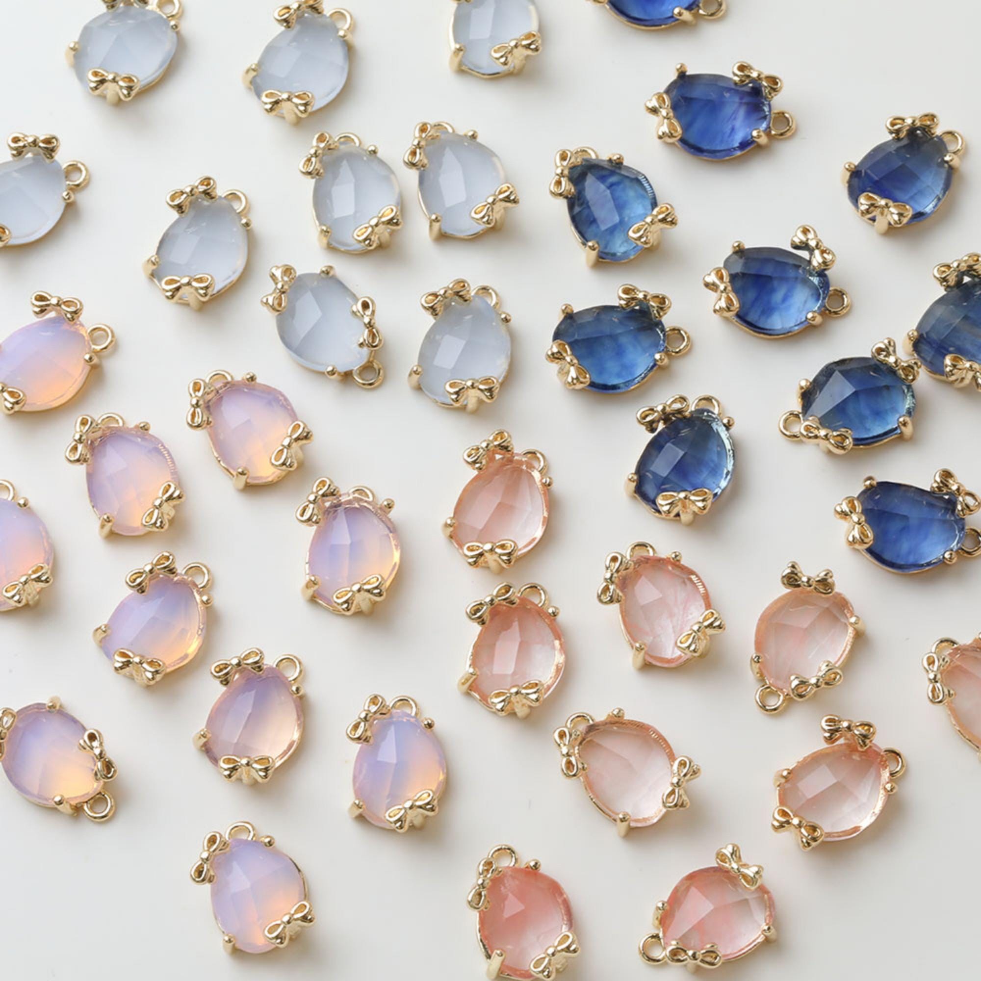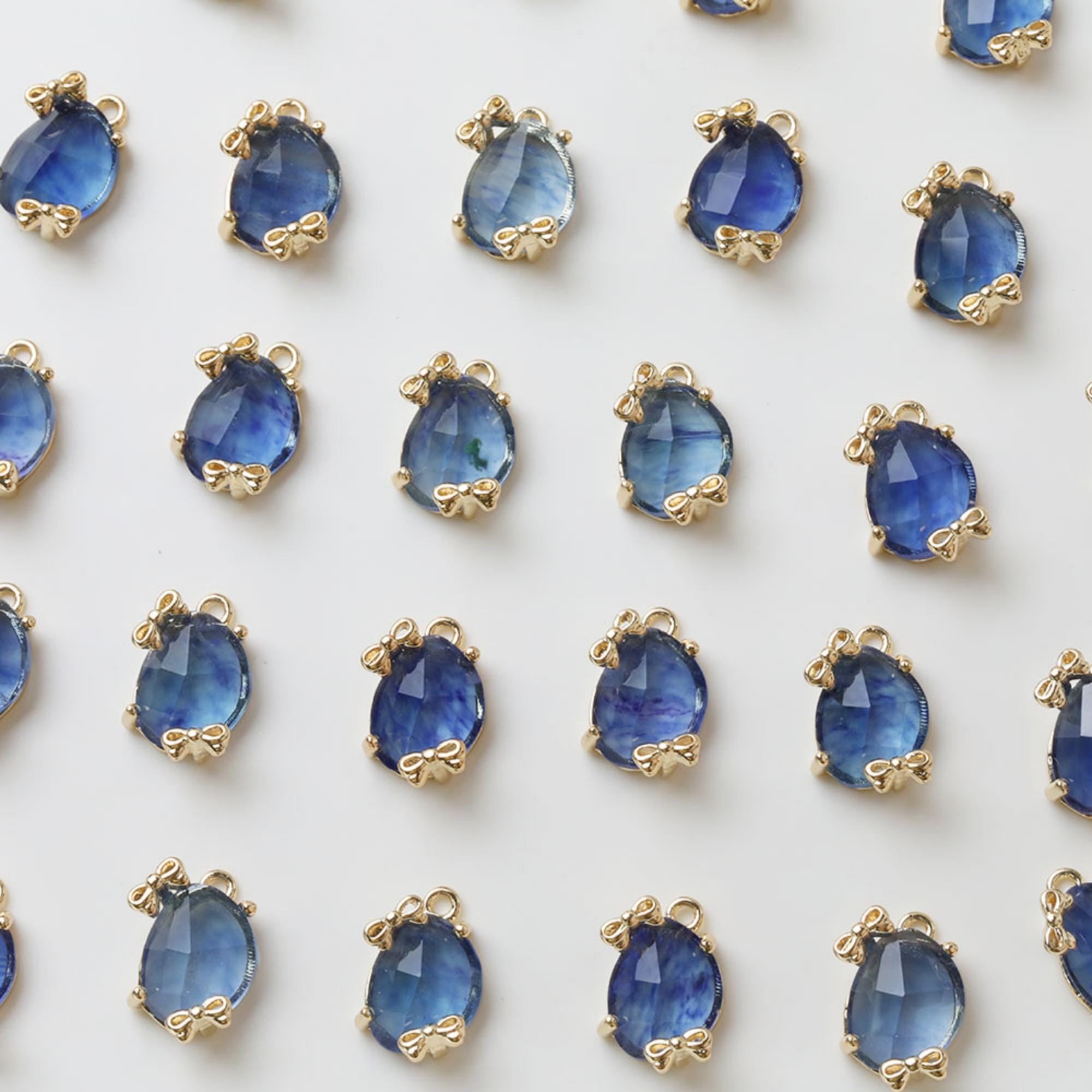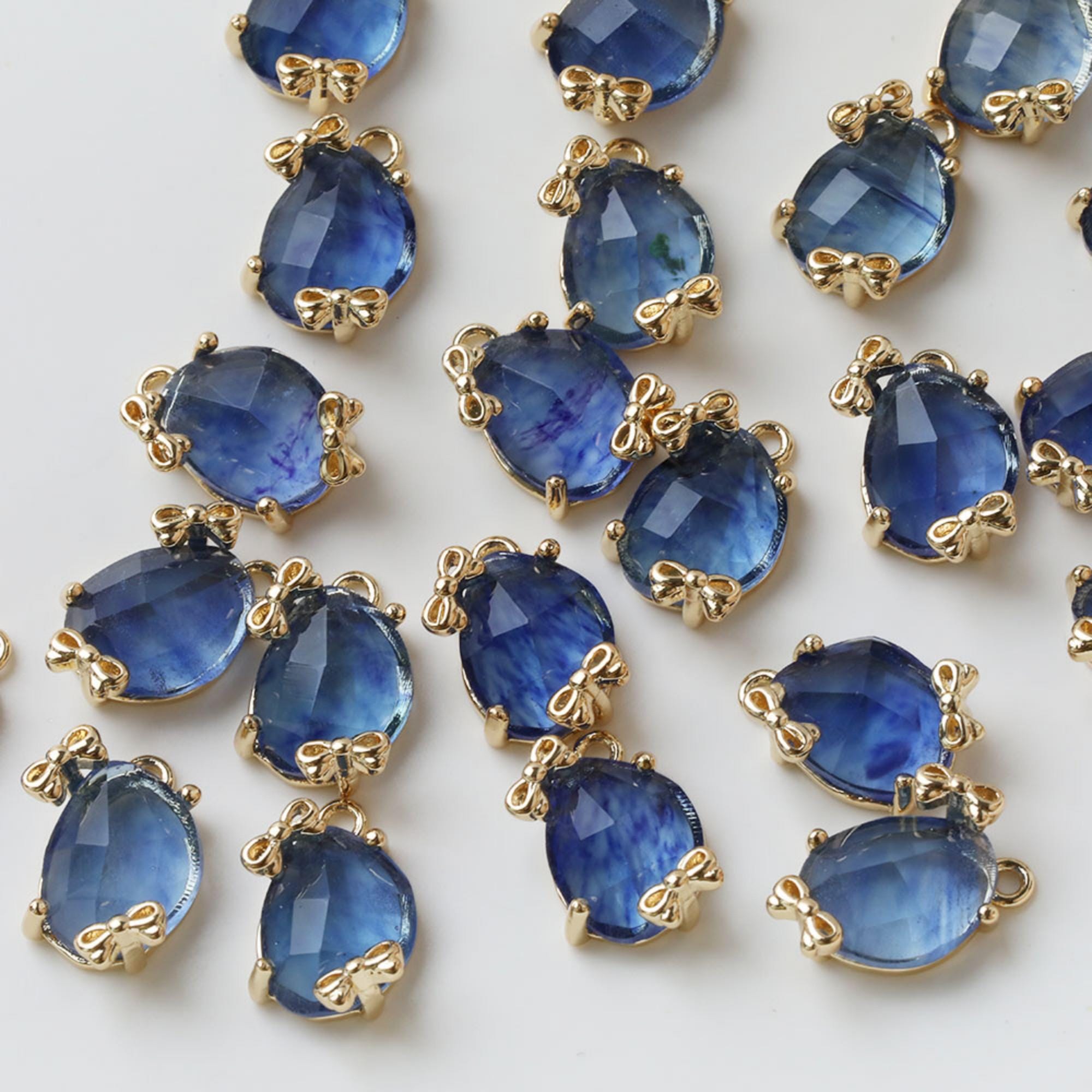 Quantity: 1pc/ 10pcsSize: 9.1*12.4mmMetal Color: 14K goldRhinestone: Pink, Navy, Light purple, blue-greyMaterial: Brass, Rhinestone, 14K Real...