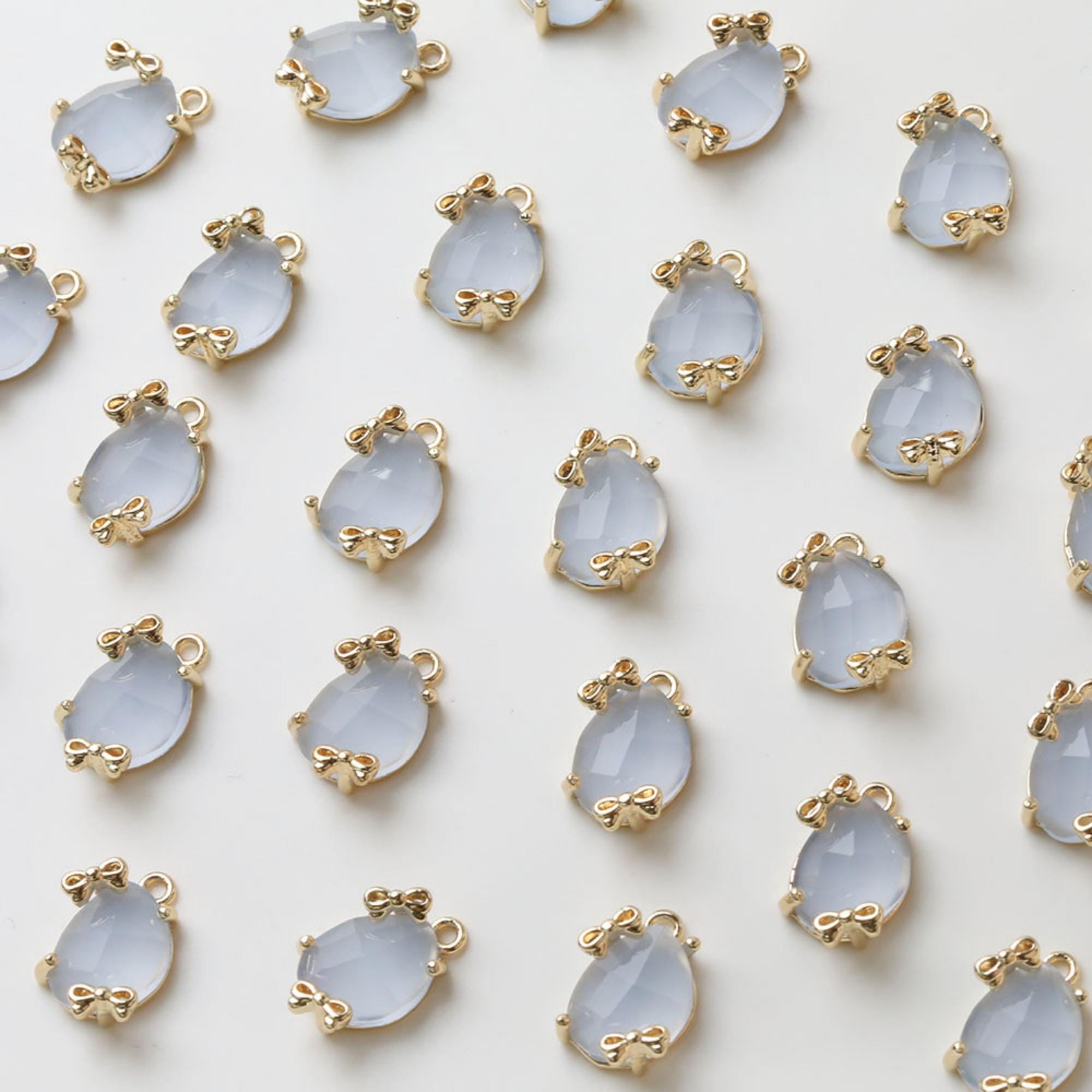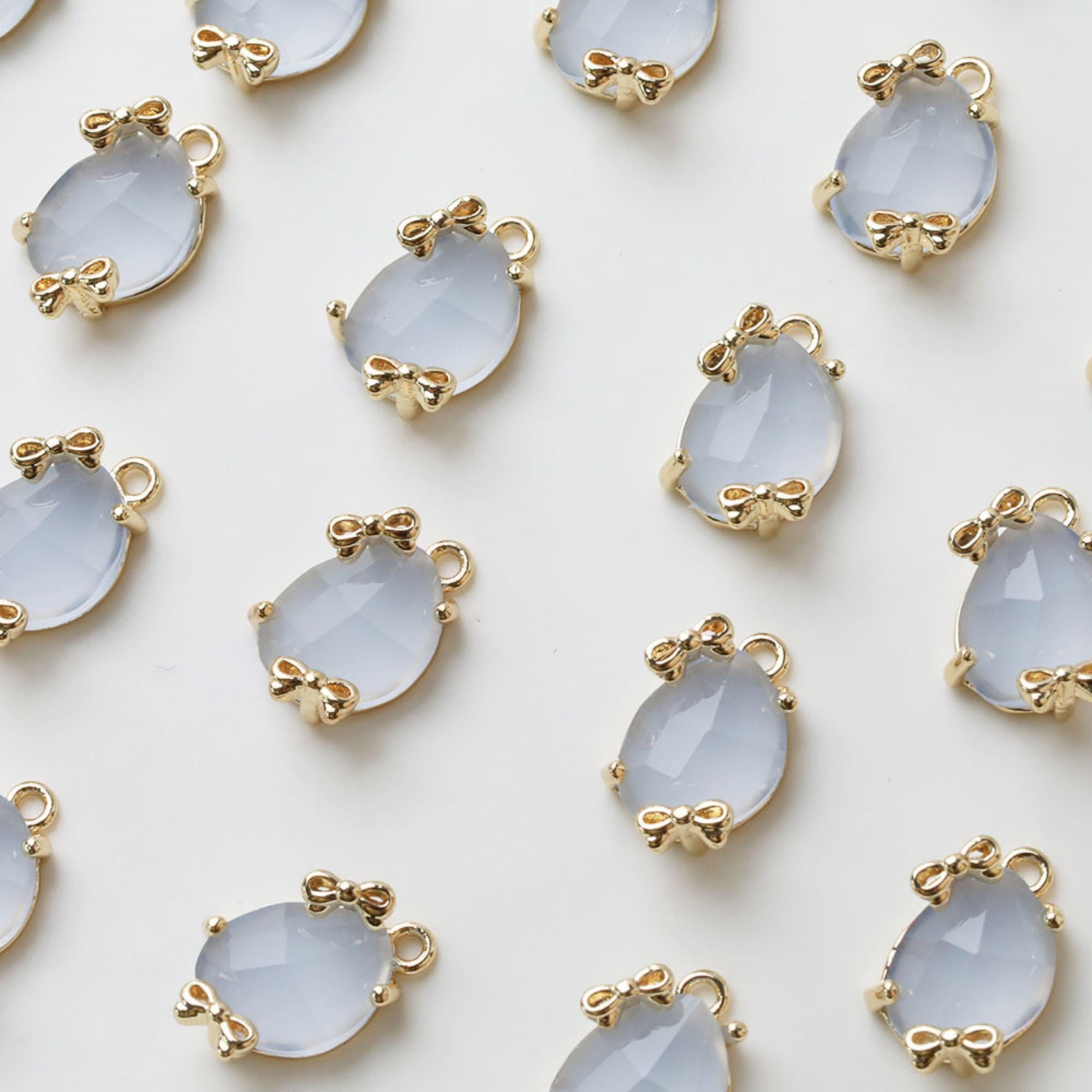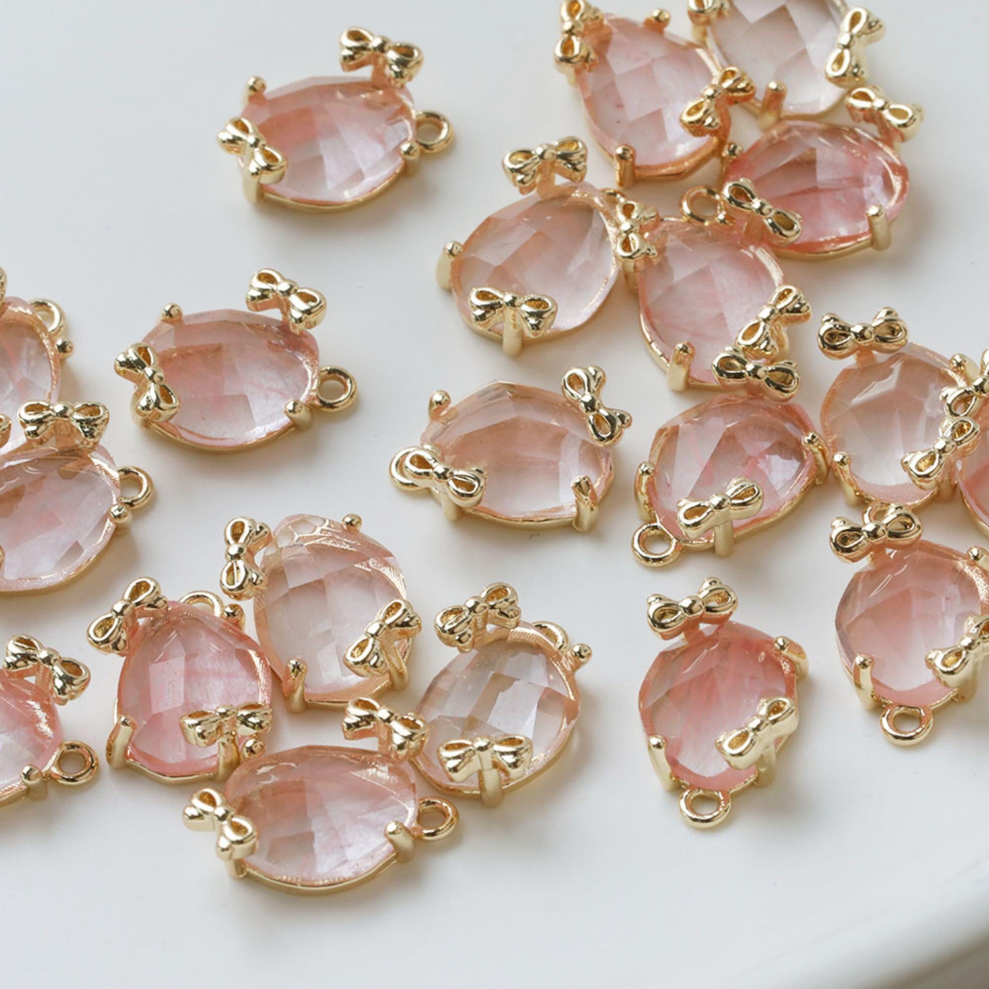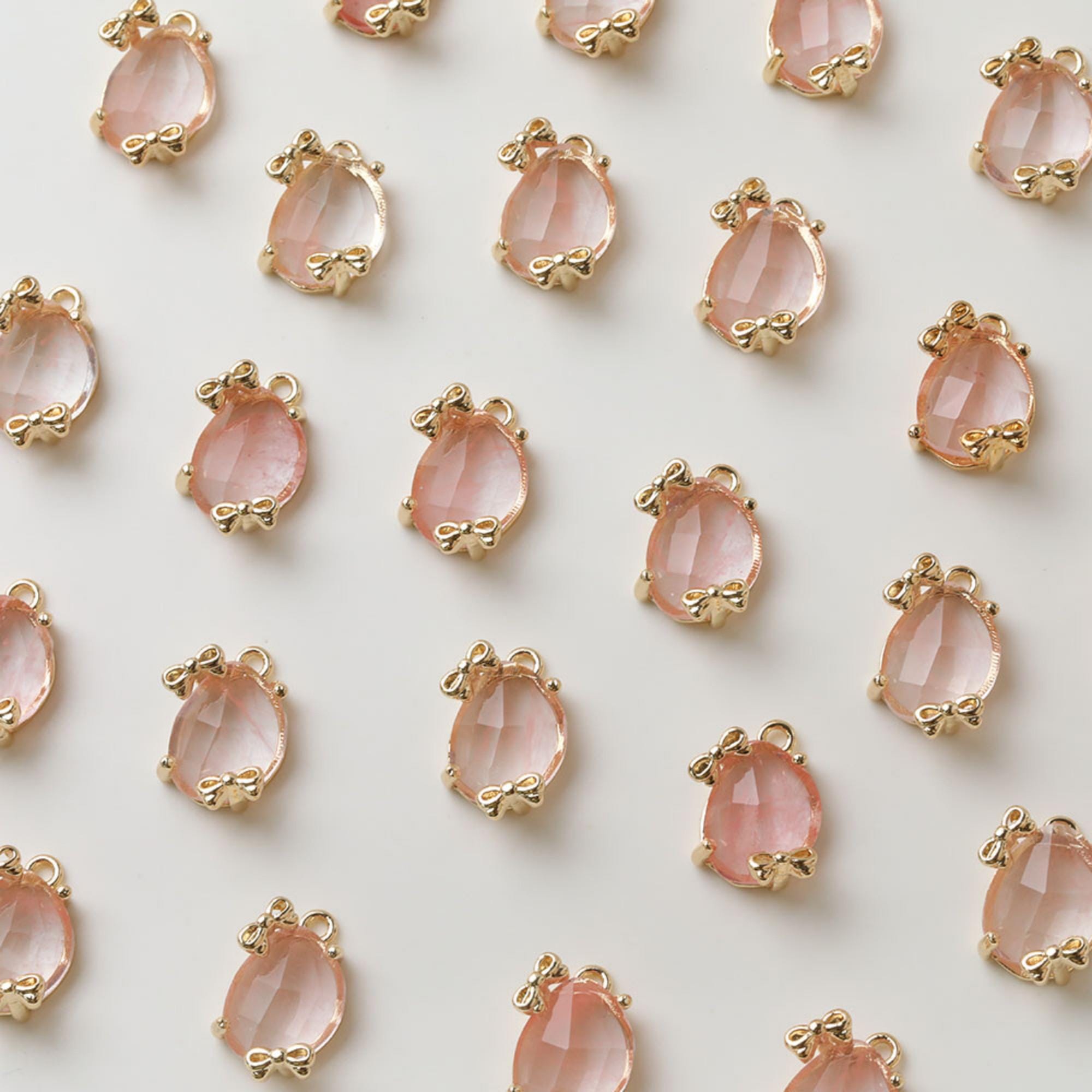Quantity: 1pc/ 10pcsSize: 9.1*12.4mmMetal Color: 14K goldRhinestone: Pink, Navy, Light purple, blue-greyMaterial: Brass, Rhinestone, 14K Real...