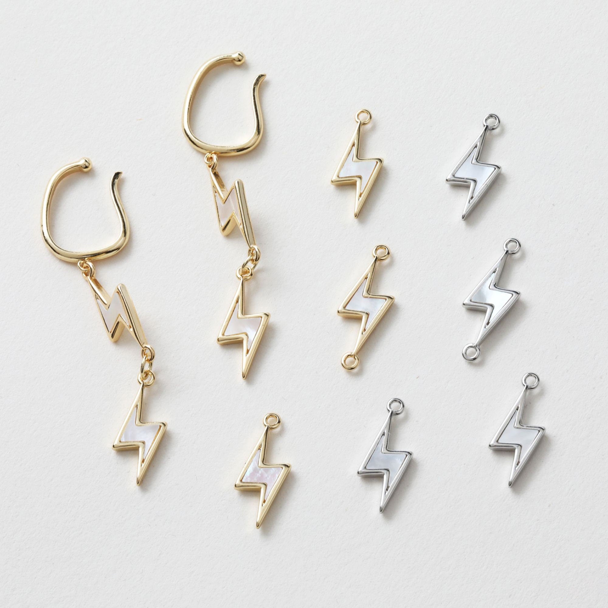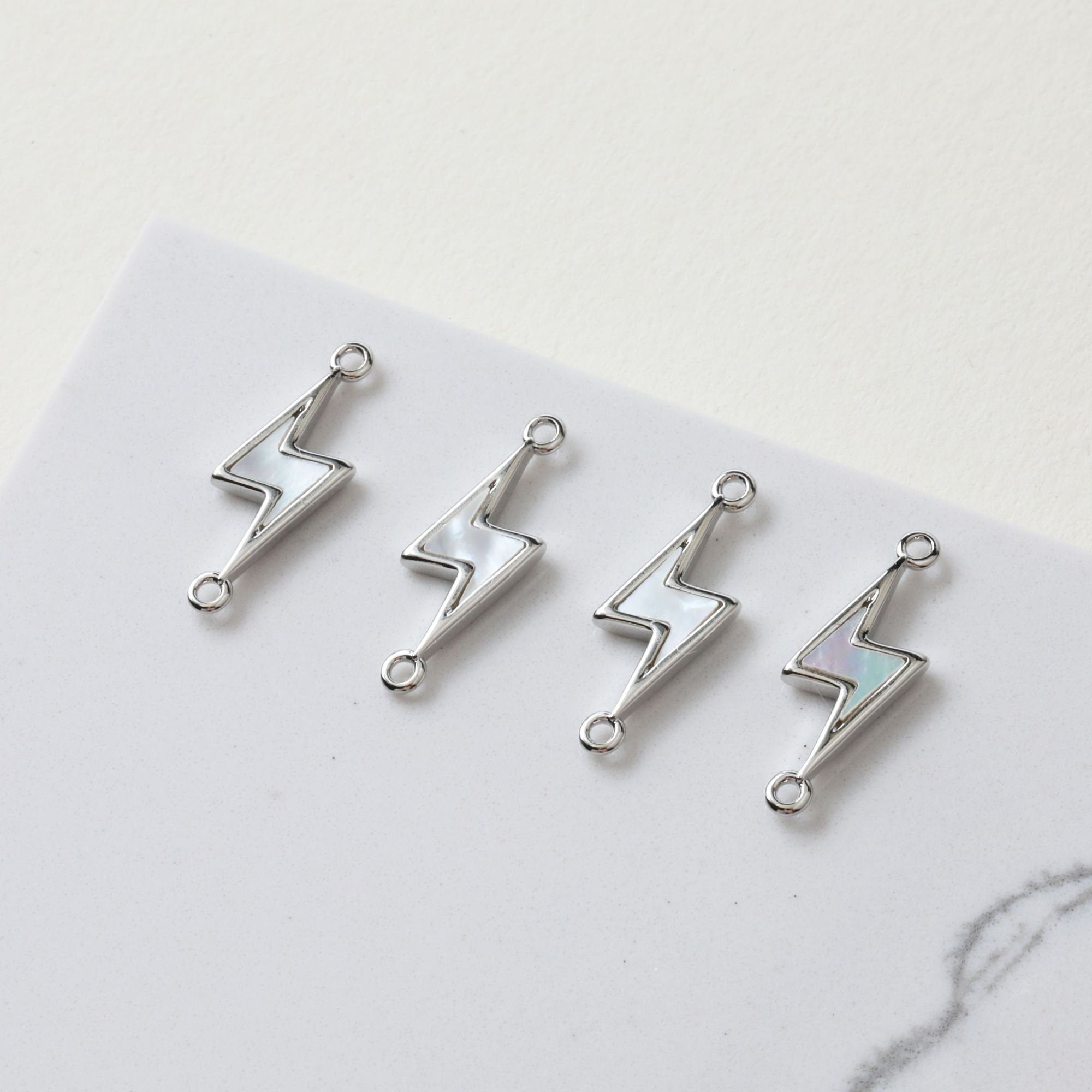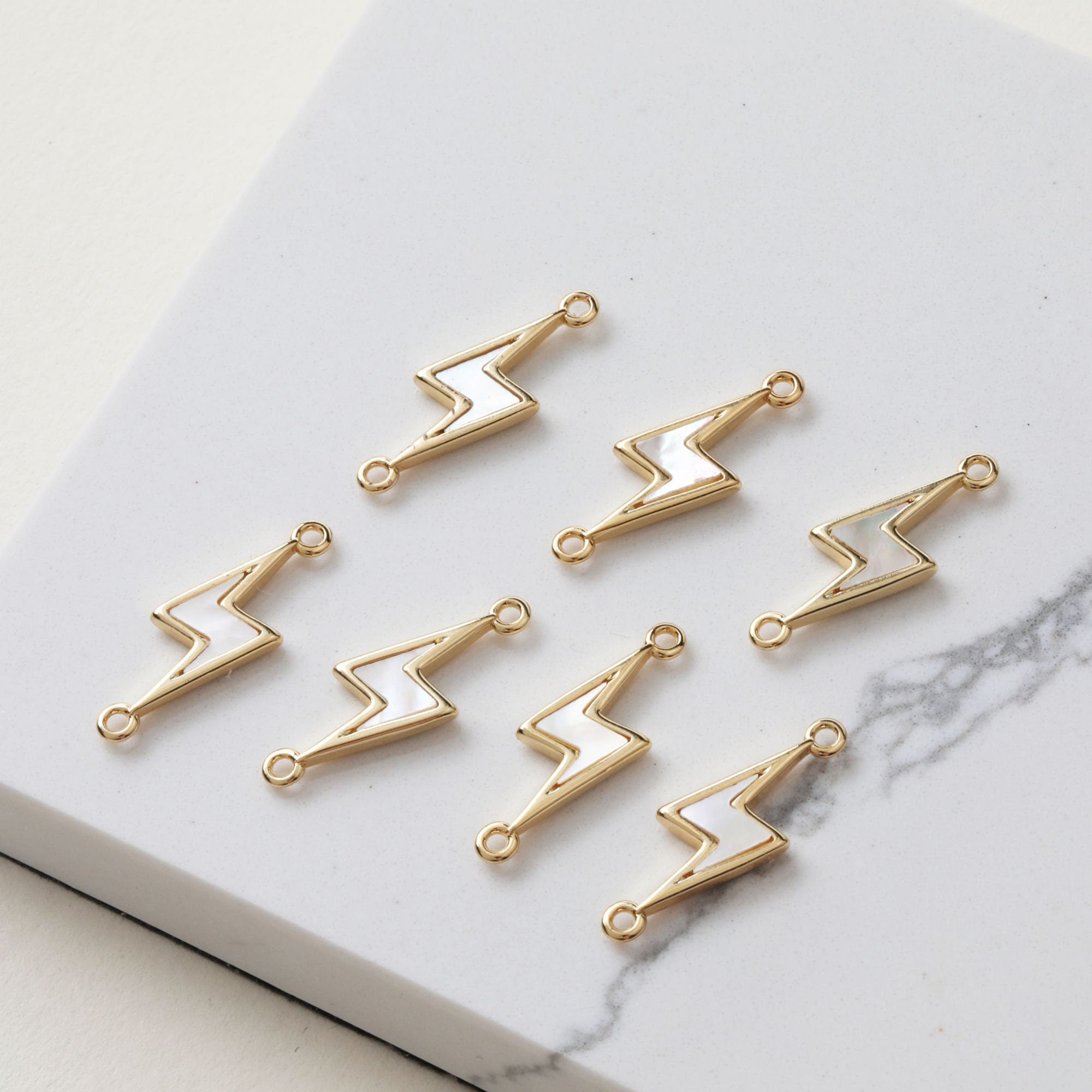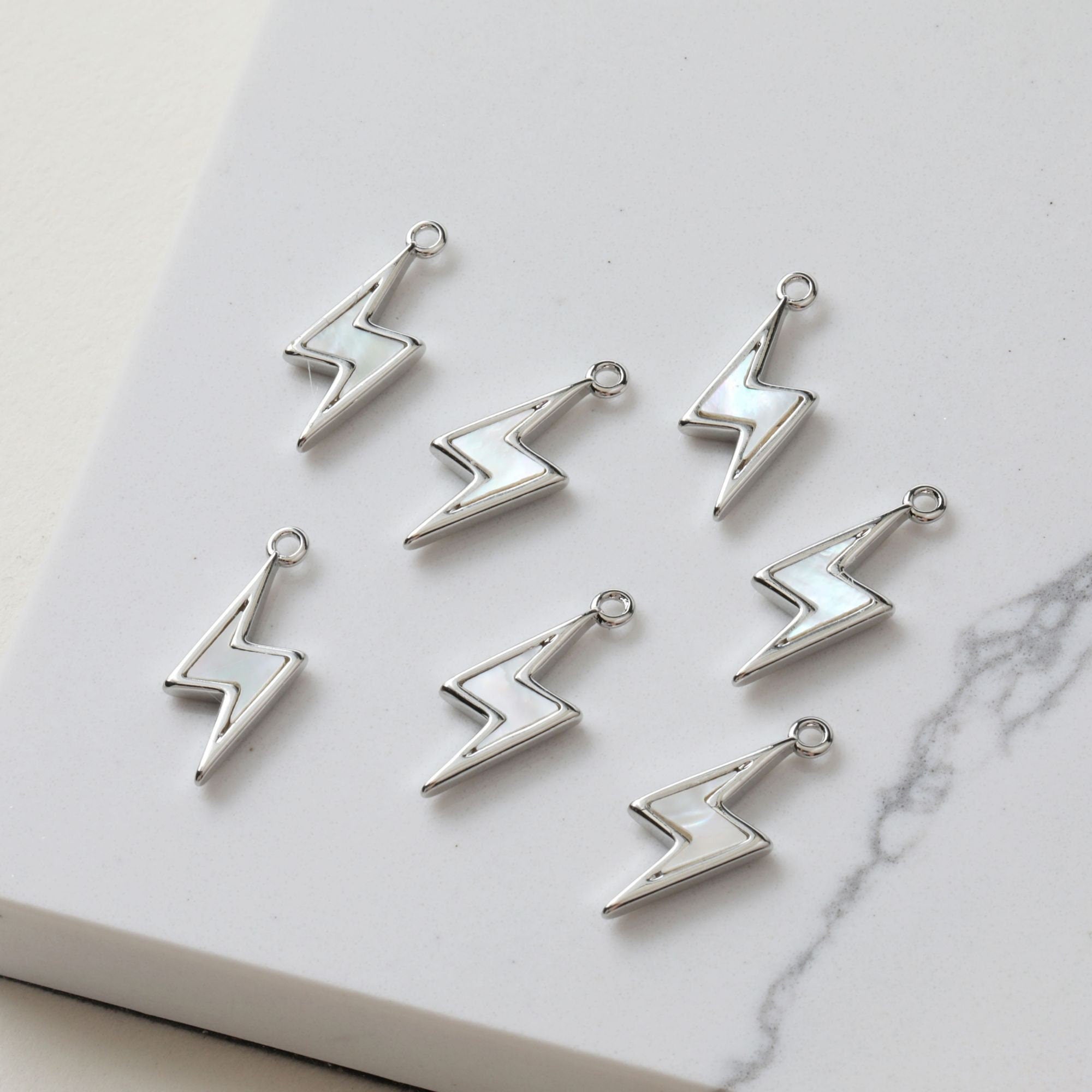 Lightning Charm, Shell Pendant, one loop, 2 loops, Bracelet Necklace Making, 14K Gold/Silver Plated Jewelry Findings...