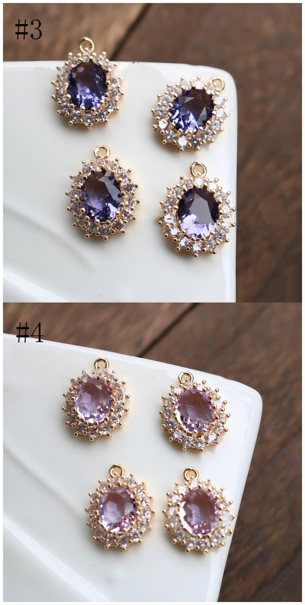 10pcs CZ charms, Cubic Zircon Crystal Pendant, Bracelet Necklace Pendant, 14K Real Gold Plated, Jewelry Findings HL119
