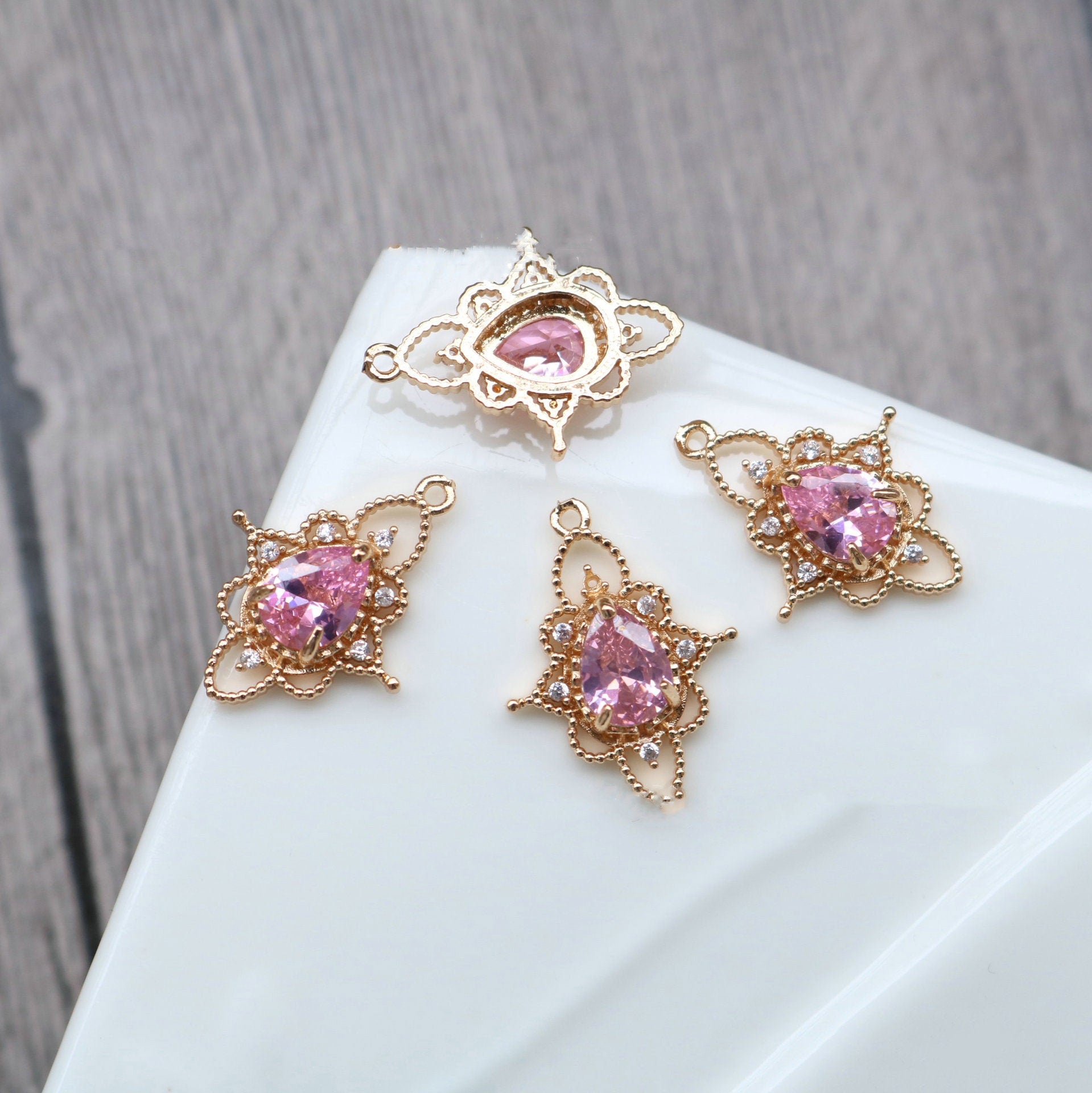 10pcs Flower Charm, Cubic Zircon Crystal Flower Pendant, Gold Plated  Earring Charms, Jewelry Findings HL090-F009