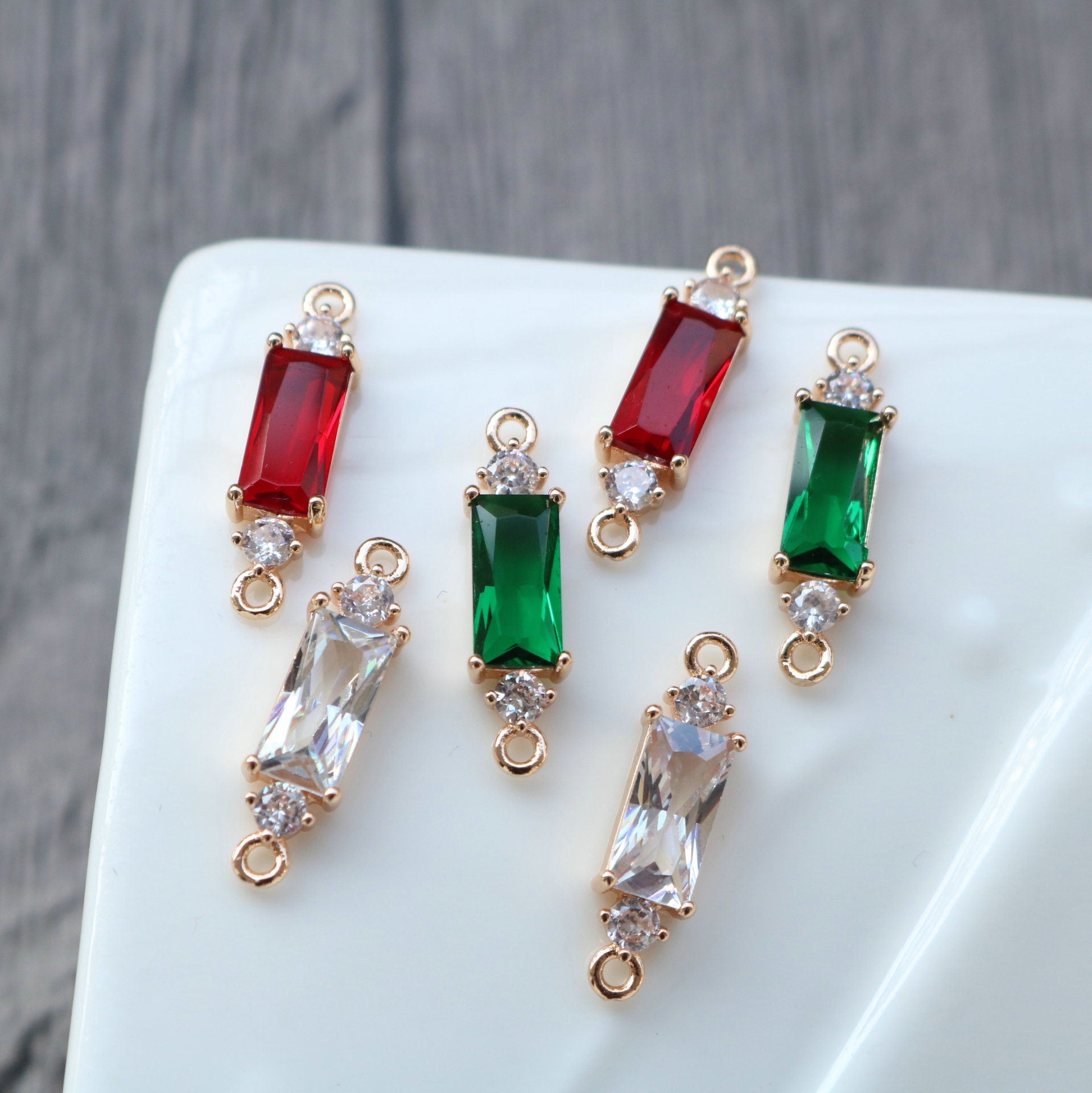 10pcs Rectangular Connector, Cubic Zircon Crystal Pendant, Bracelet Necklace Pendant, 14K Real Gold Plated, Jewelry Findings HL095-F028
