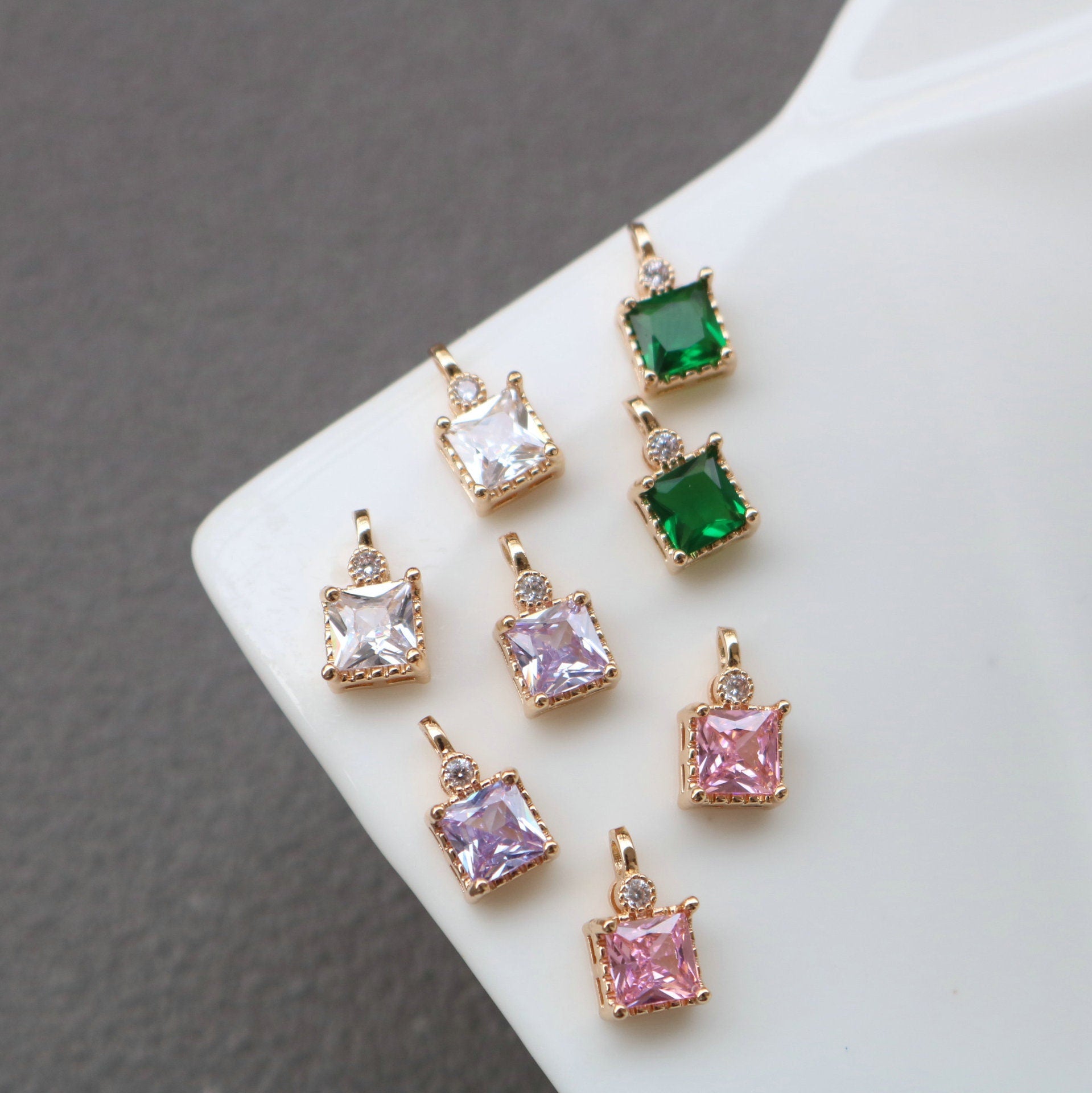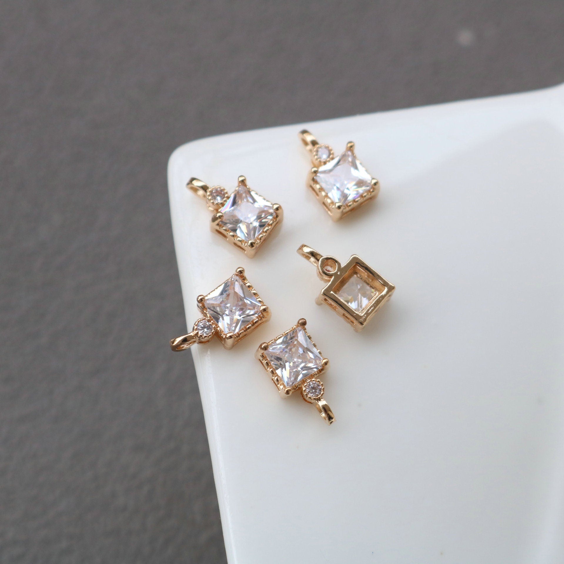 10pcs Square Charm, Cubic Zircon Crystal Pendant, Real Gold Plated Brass Earring Charms, Jewelry Findings HL088Quantity:...