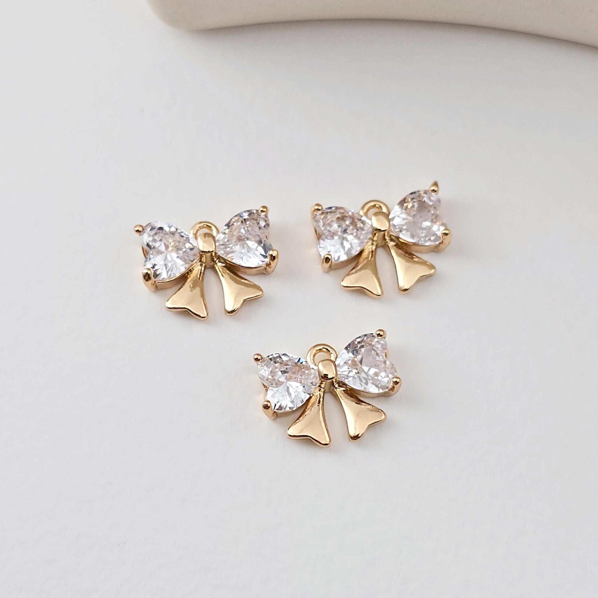 2pcs CZ Pave Bow Tie Charm, Cubic Zircon Crystal Bow Tie Pendant, Necklace Pendant, 18K Real...