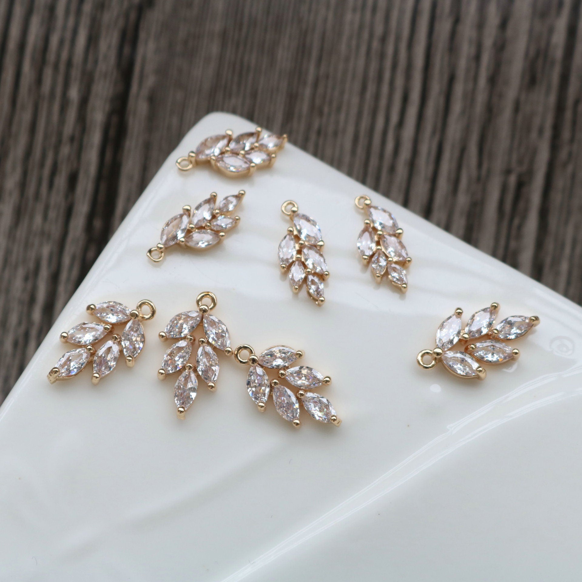 2PCS CZ Pave Leaves Charm, Cubic Zircon Crystal Leaf Pendant, Bracelet Necklace Pendant, Gold Plated Charm,...