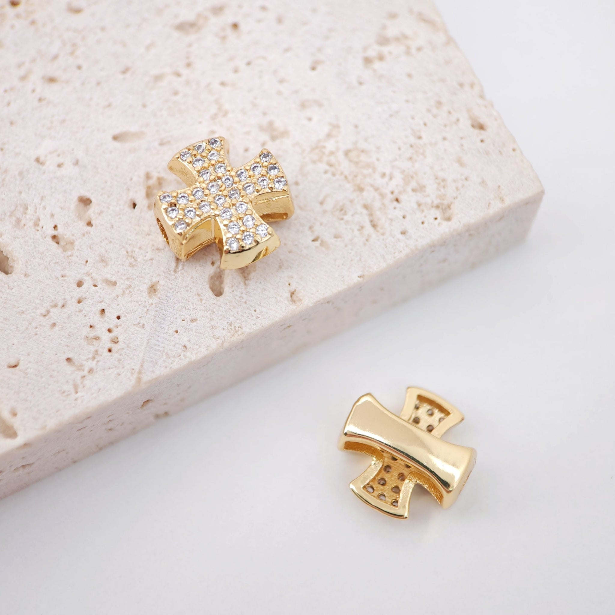 5pcs Cubic Cross Spacer Beads, 18K Gold Plated Micro CZ Pave Charm Bead, 12mm, Bracelet Necklace Making Pendant, Jewelry Finding S201