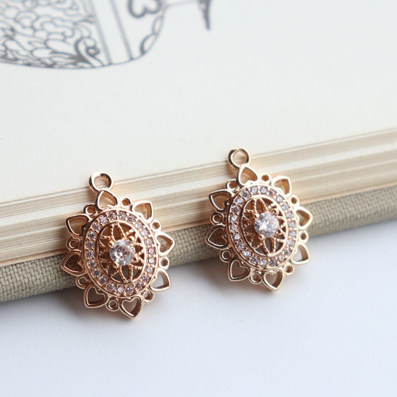 10pcs CZ Pave Boho Oval Charm, Cubic Zircon Crystal Pendant, Bracelet Necklace Pendant, 14K Real Gold...