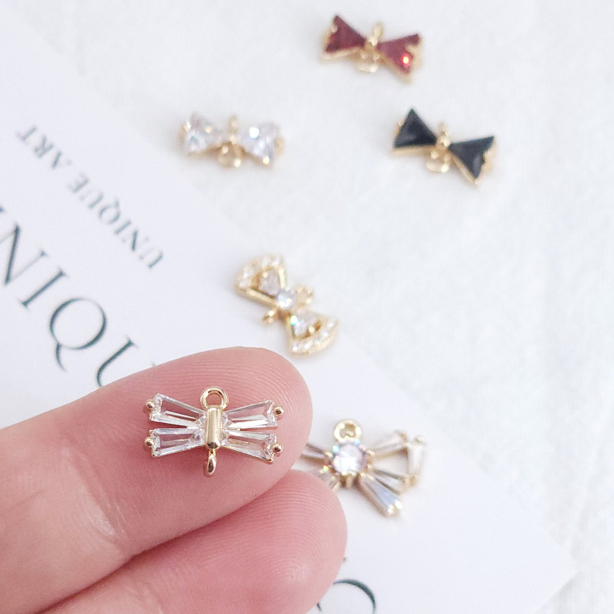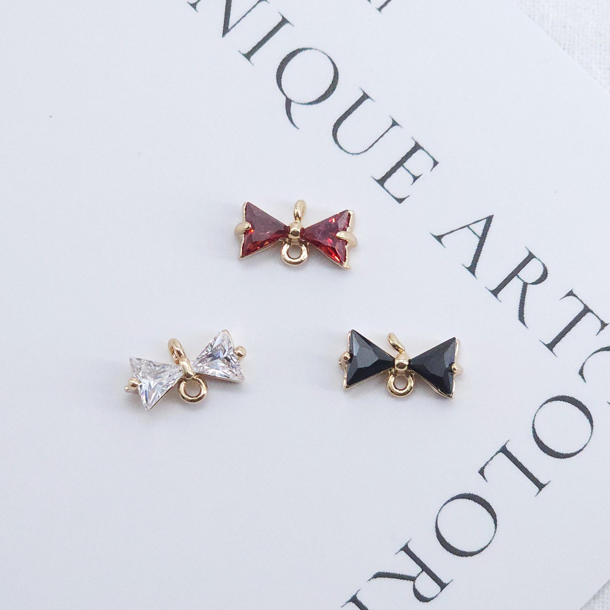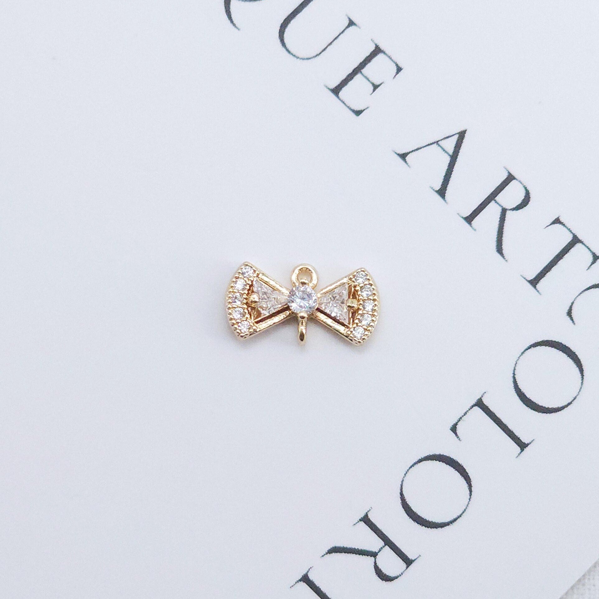 CZ Pave Bow Tie Charm, Cubic Zircon Crystal Bow Tie Pendant, Bracelet Necklace Pendant, Gold Plated Charm, Jewelry Findings ZR013-F168