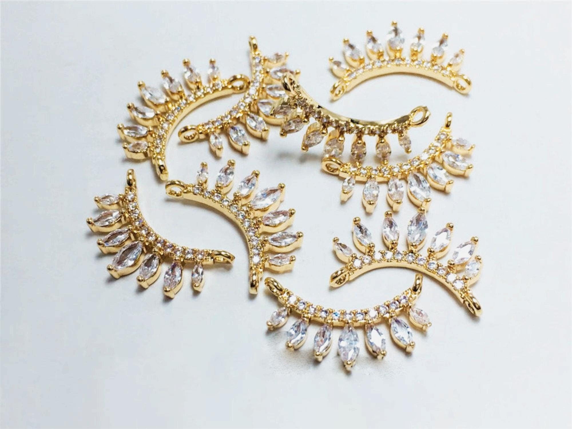 CZ Pave Crown-shaped Charm, Cubic Zircon Crystal Pendant, Bracelet Necklace Pendant, 14K Real Gold Plated, Jewelry...