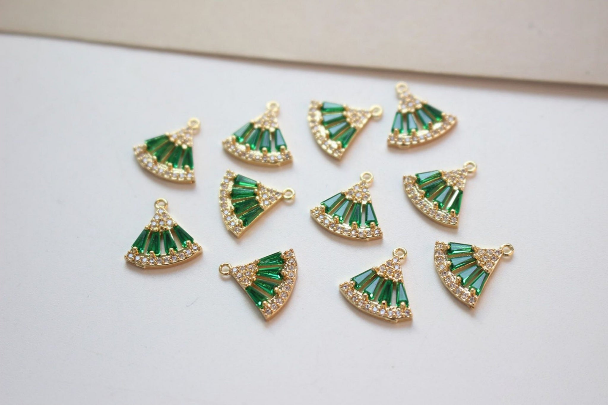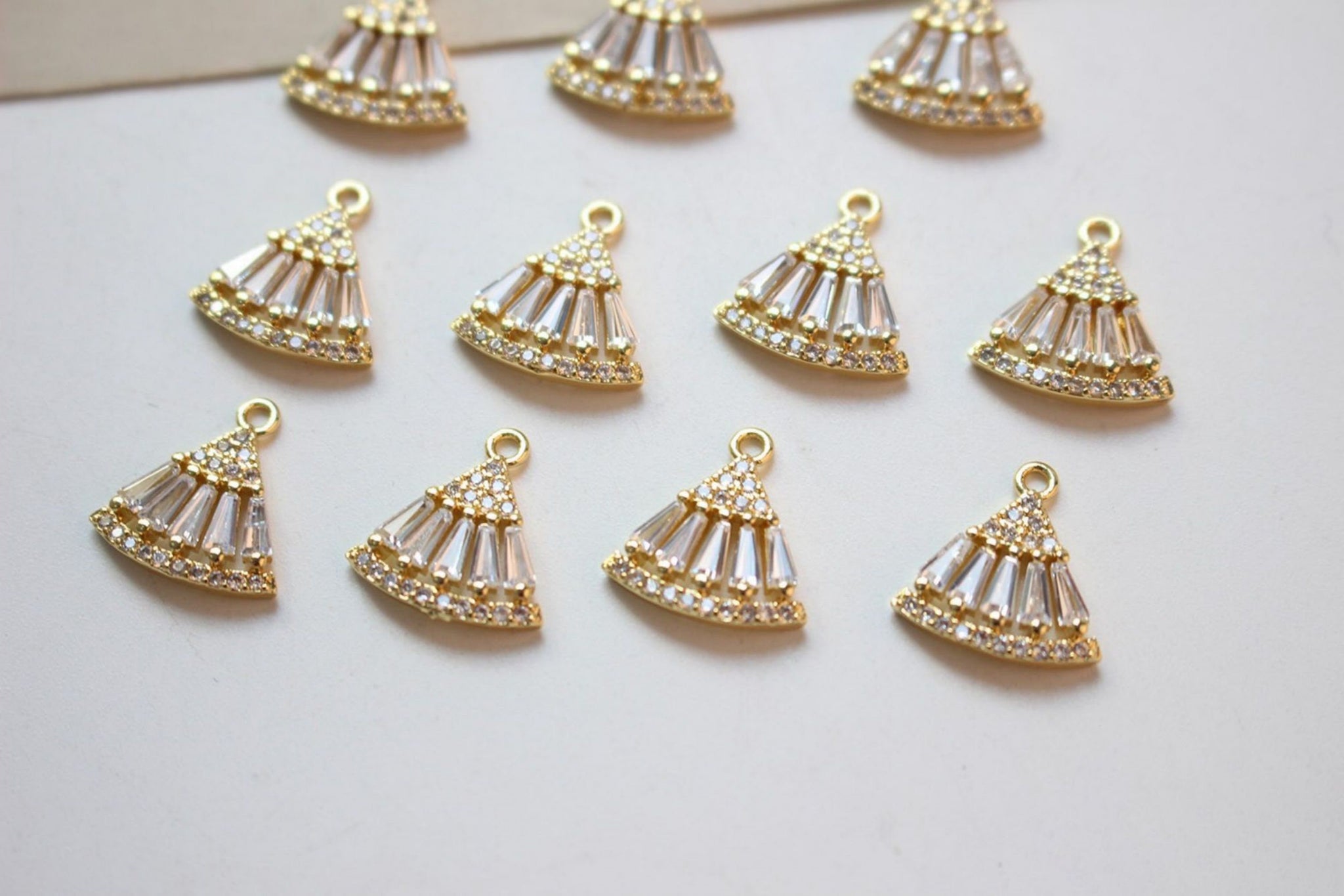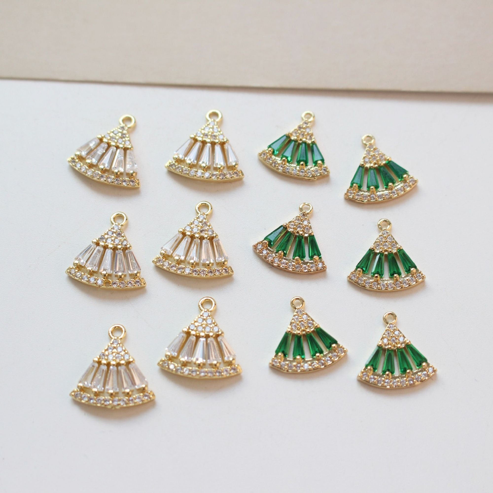CZ Pave Fan Shape Charm, Cubic Zircon Crystal Fan Connector, CZ Earring Charms, Gold Plated  Earring Charms, Jewelry Findings BB030-F031