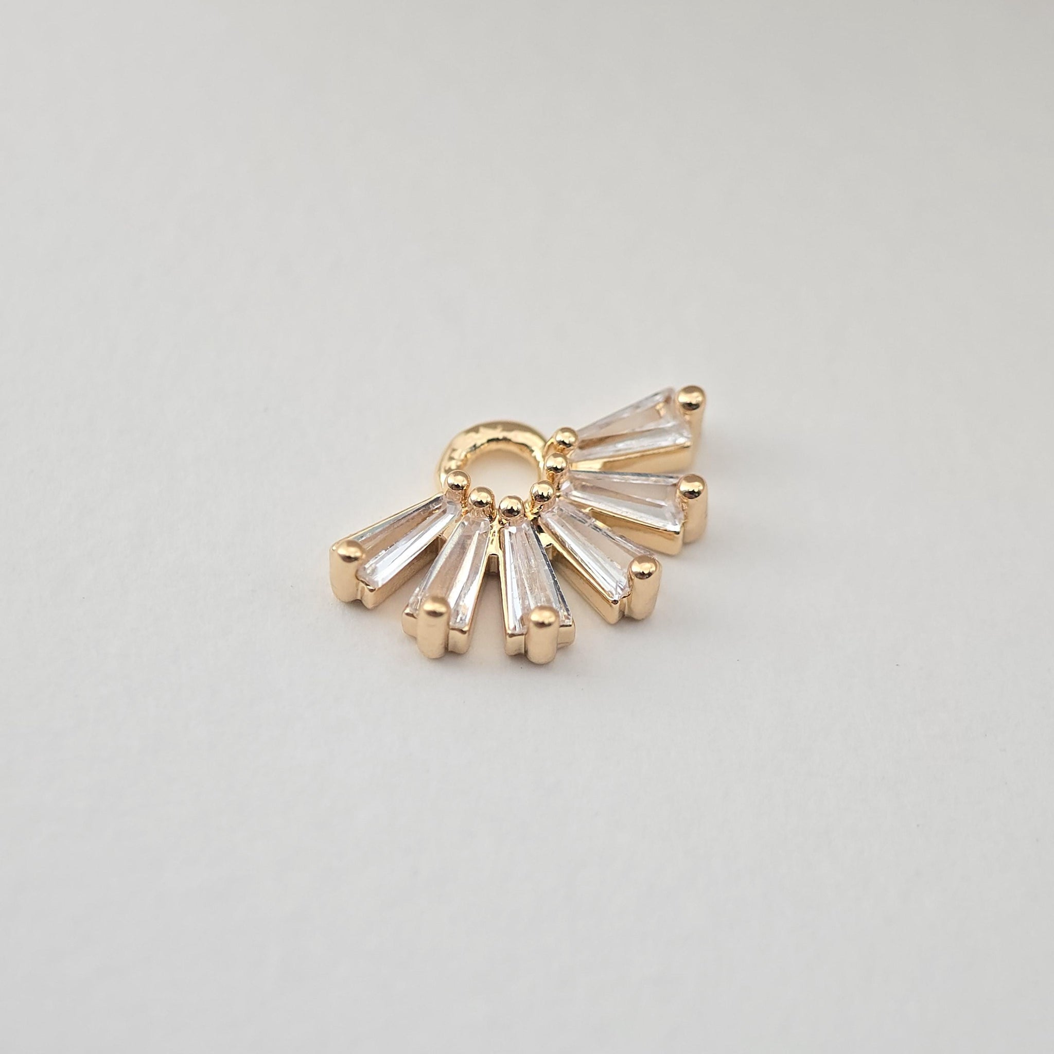 CZ Pave Fan Shape Charm, Cubic Zircon Crystal Fan Connector, CZ Earring Charms,Real Gold Plated Earring Charms, Jewelry Findings D0238