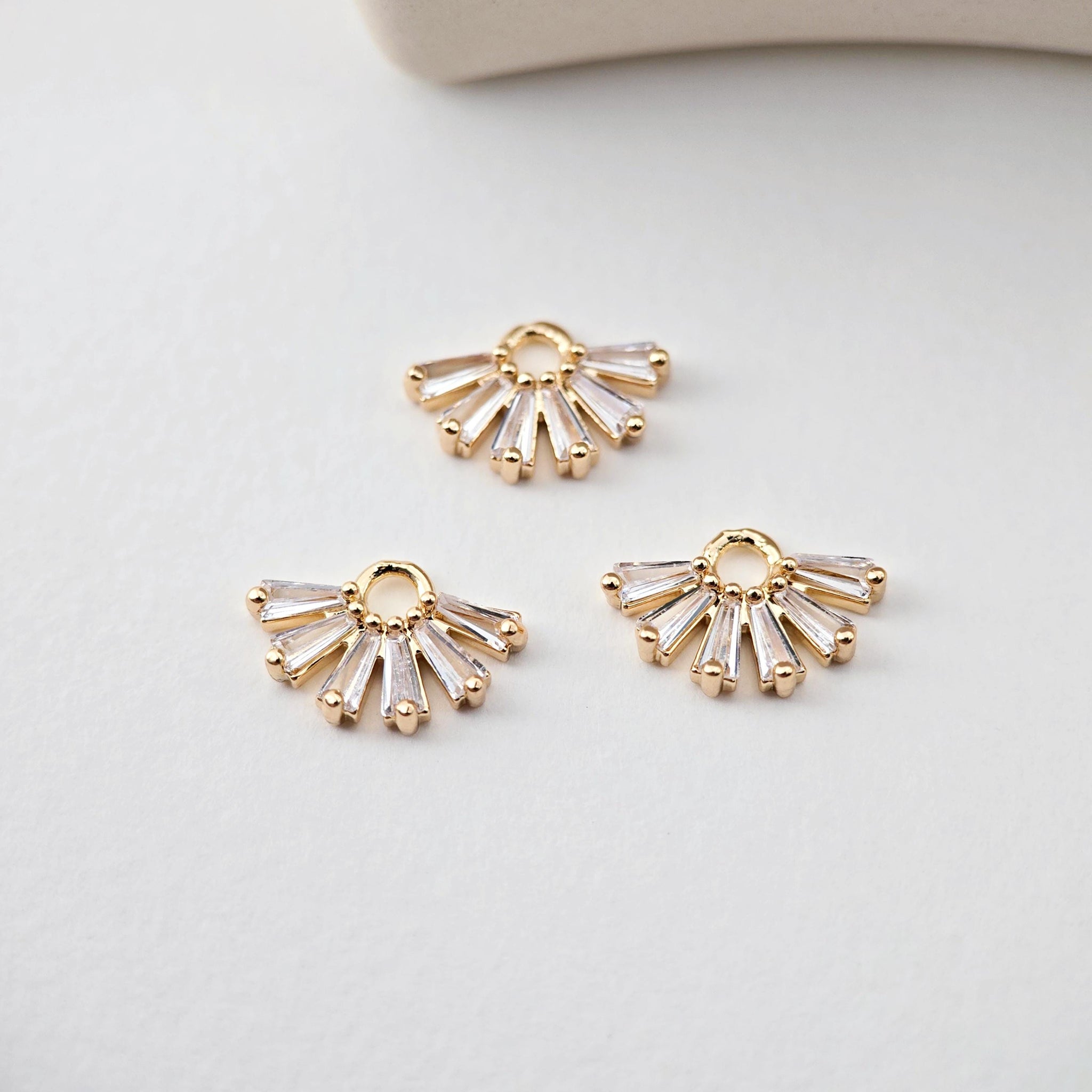 CZ Pave Fan Shape Charm, Cubic Zircon Crystal Fan Connector, CZ Earring Charms,Real Gold Plated Earring...