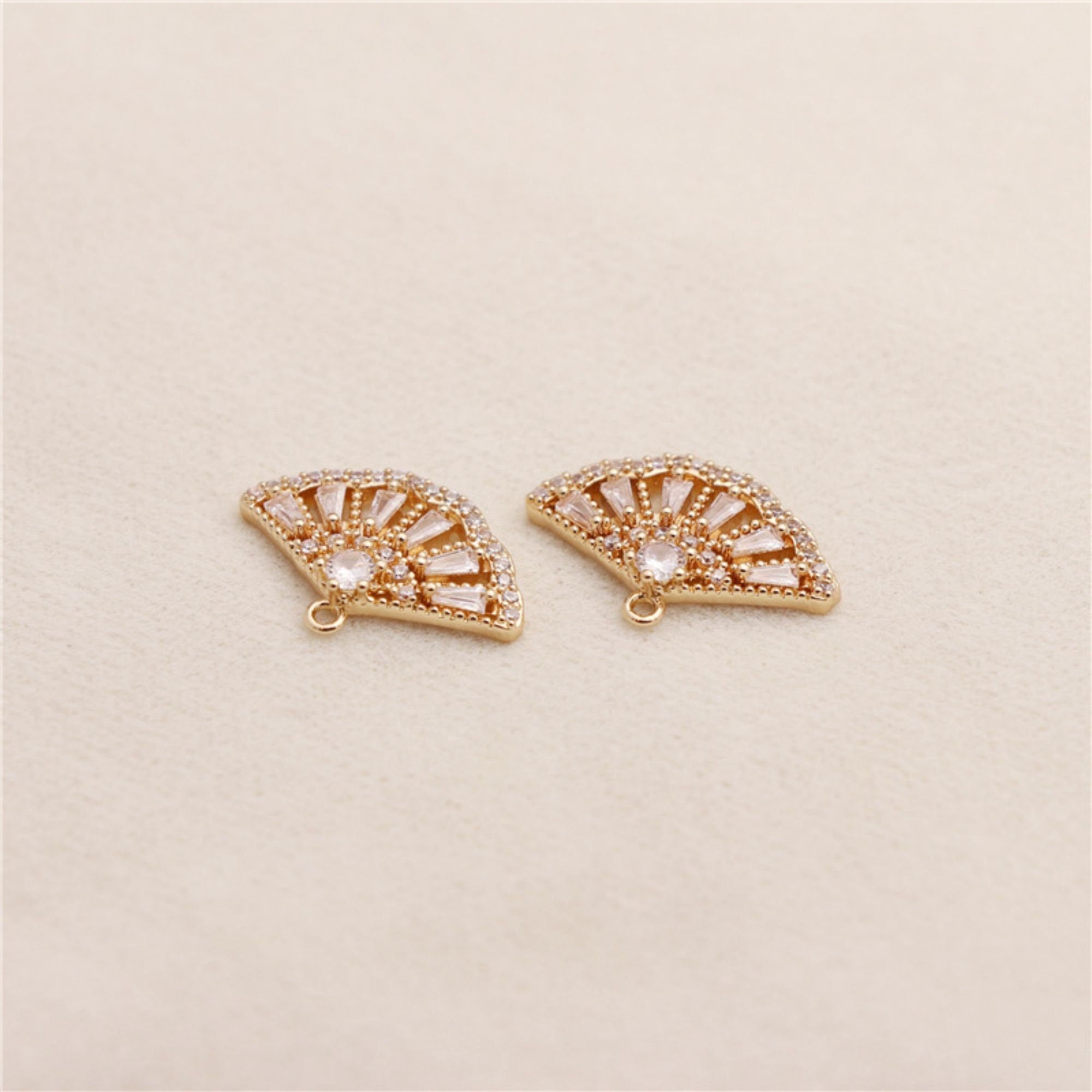 CZ Pave Fan Shape Charm, Cubic Zircon Crystal Fan Pendant, Bracelet Necklace Pendant, Gold Plated Charm, Jewelry Findings STG026-F113