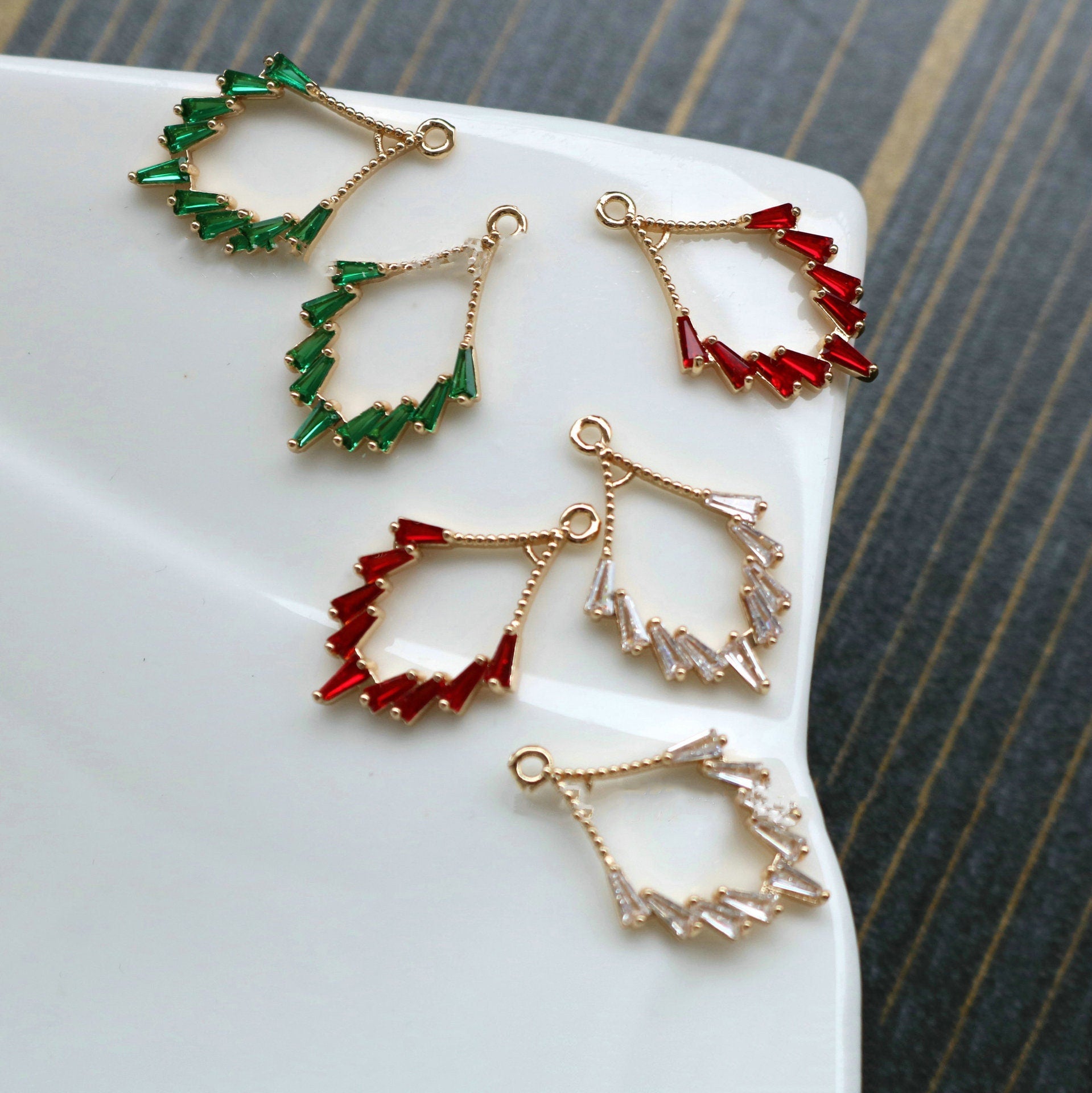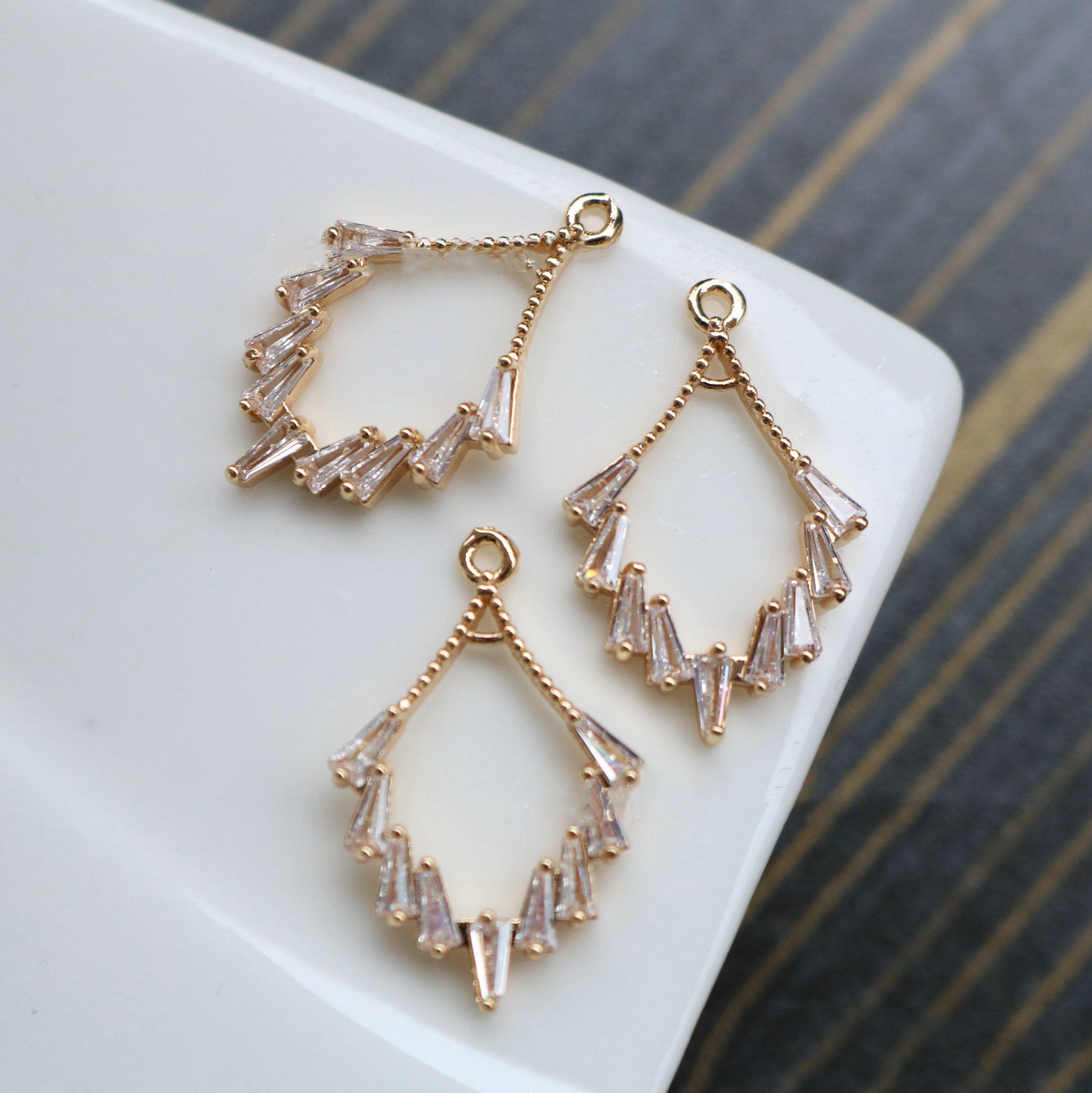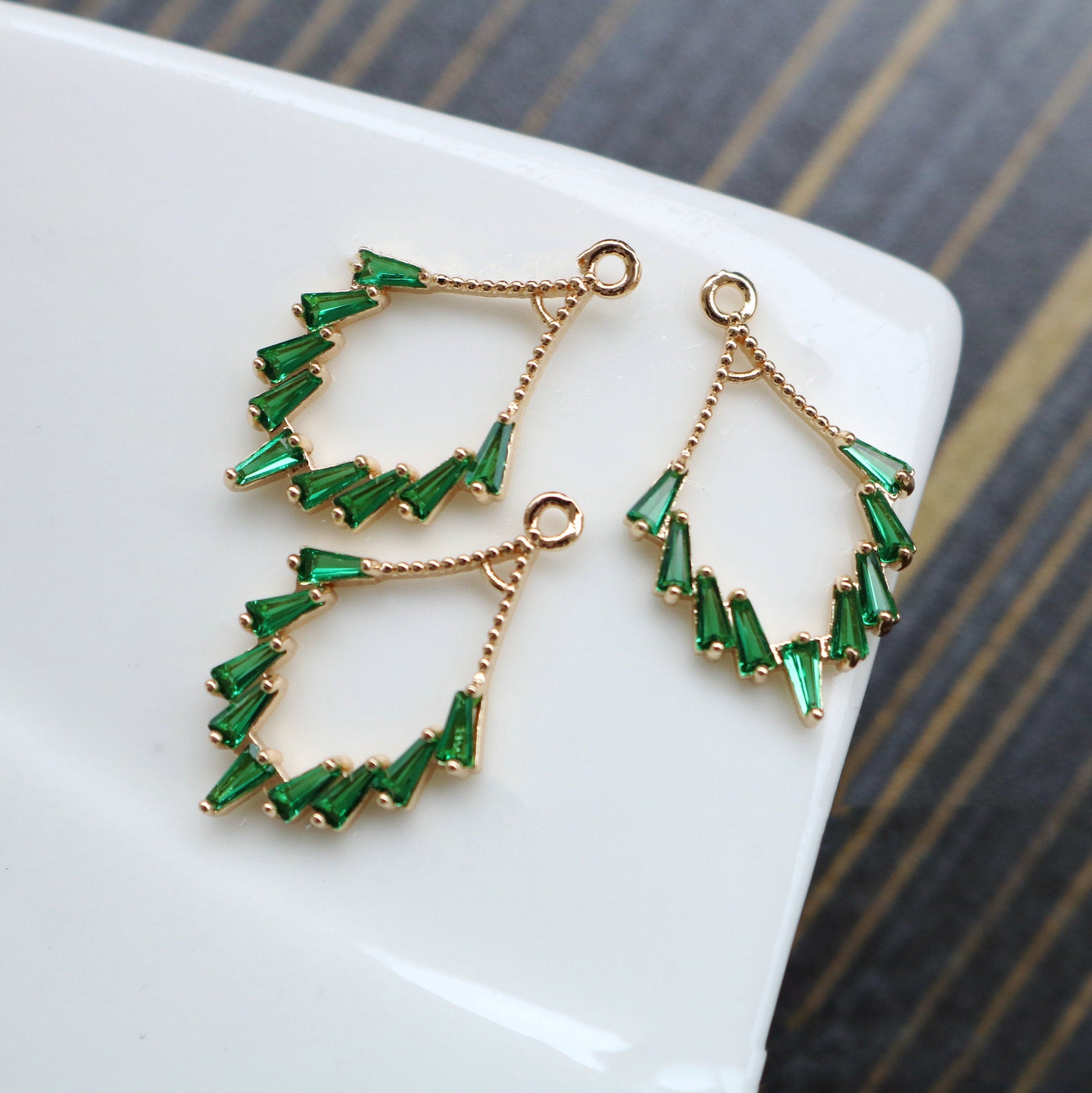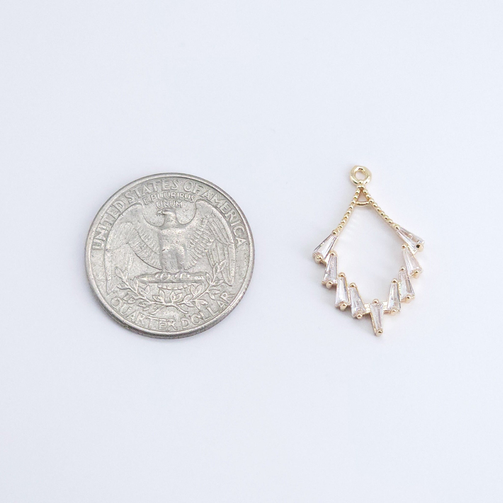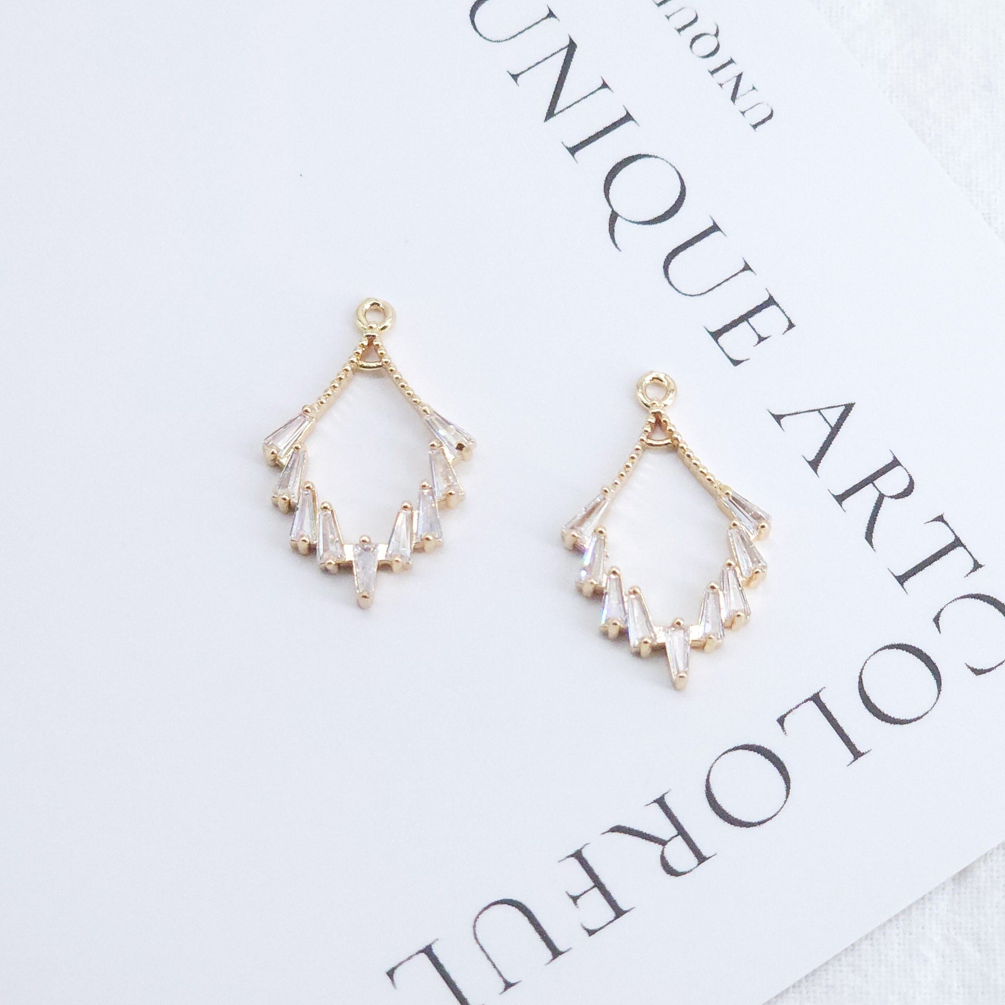 CZ Pave Fan Shape Charm, Cubic Zircon Crystal Fan Pendant, CZ Earring Charms,  Gold Plated Brass Earring Charms, Jewelry Findings HL058-F035