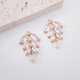 CZ Pave Leaf Charm, Cubic Zircon Crystal Leaf Pendant, CZ Earring Charms, Gold Plated Brass Earring...