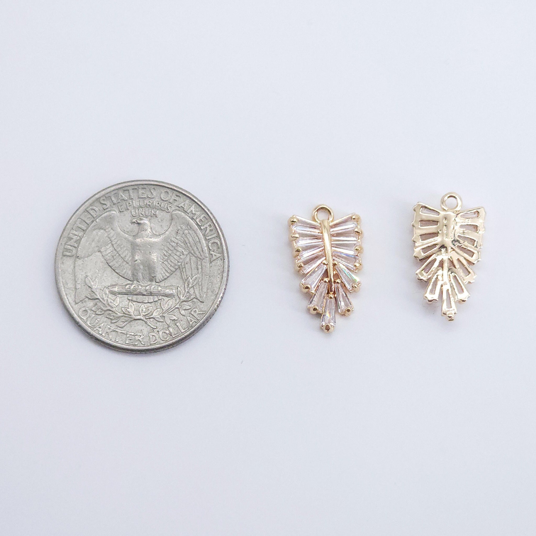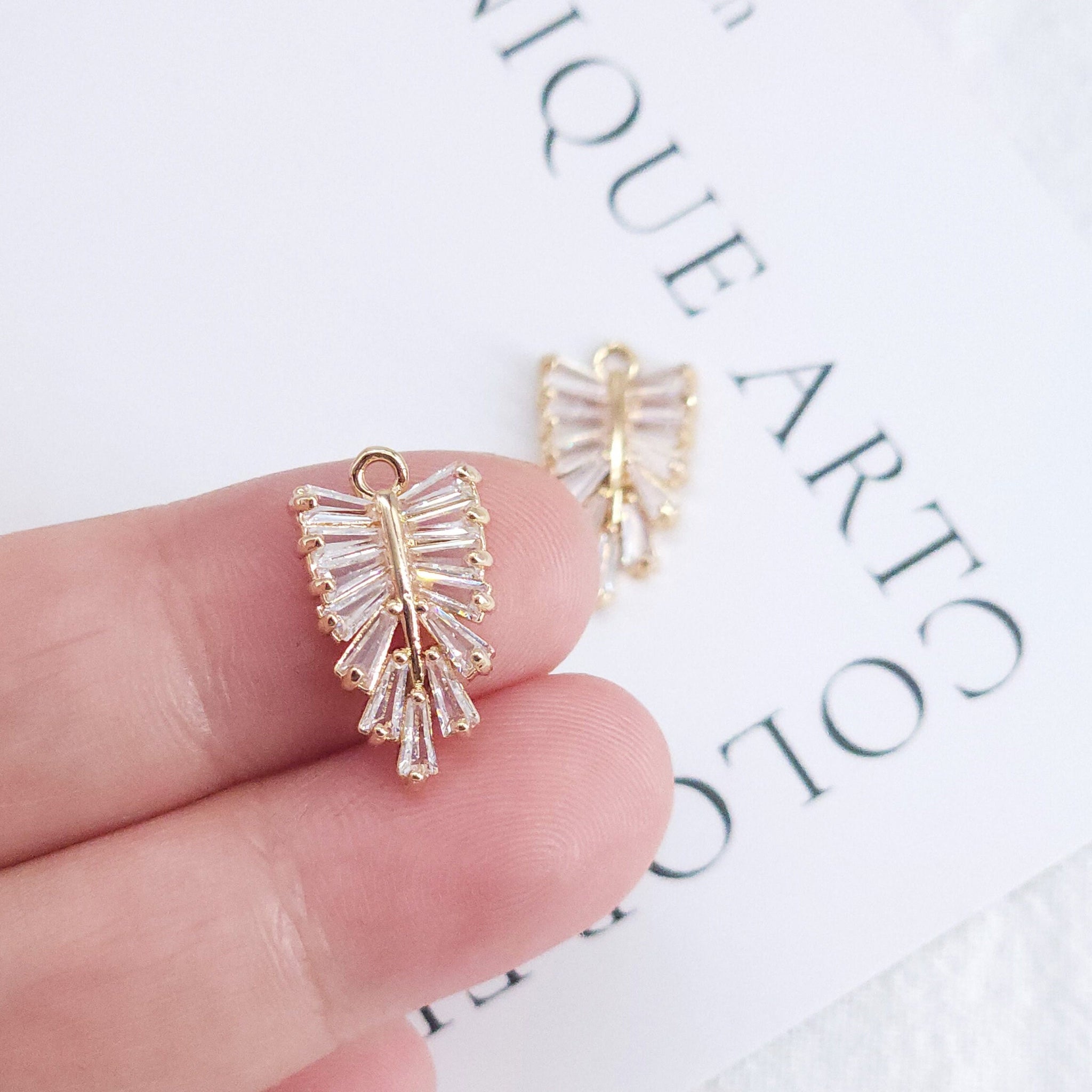CZ Pave Leaf Charm, Cubic Zircon Crystal Leaf Pendant, CZ Earring Charms,  Gold Plated Brass Earring Charms, Jewelry Findings ZR011-F214