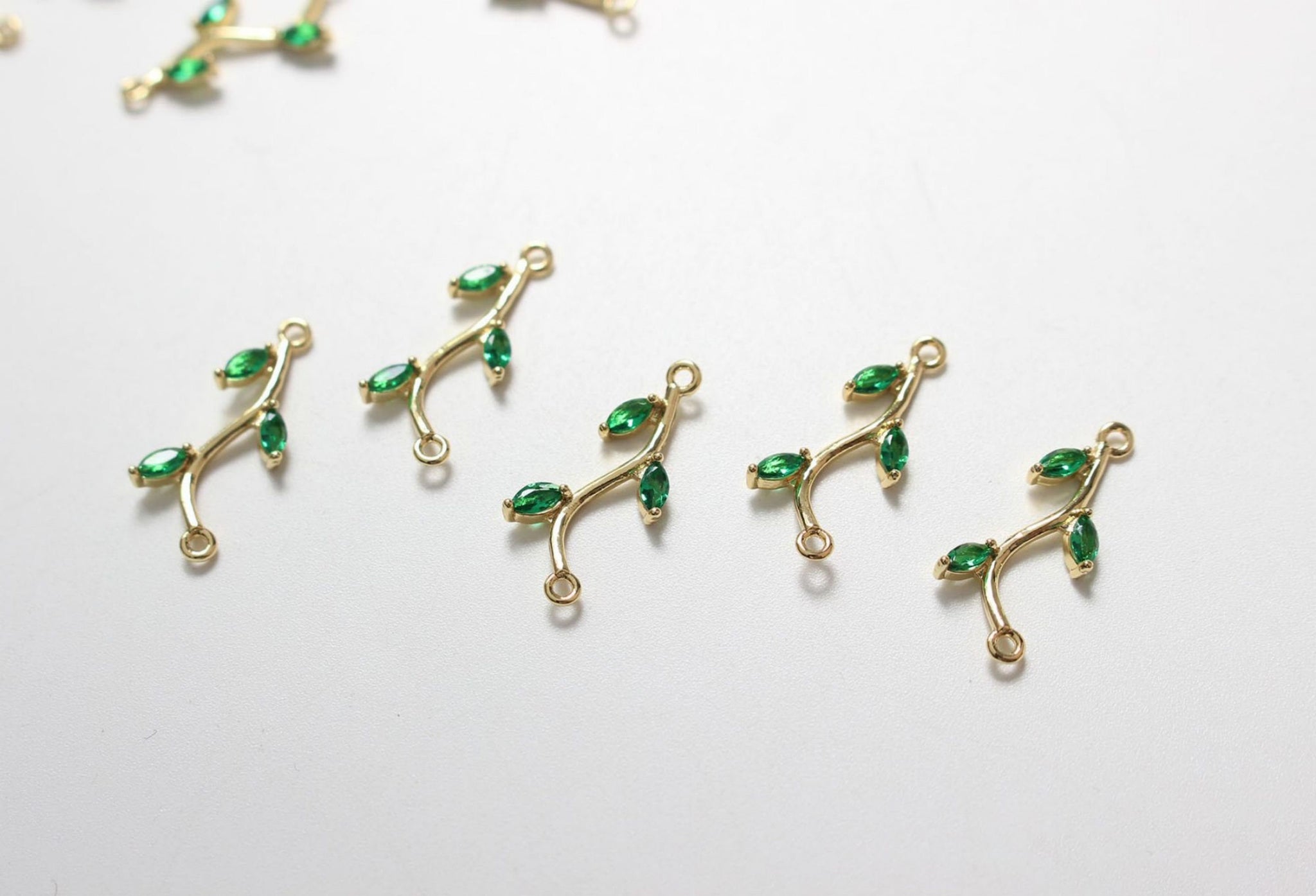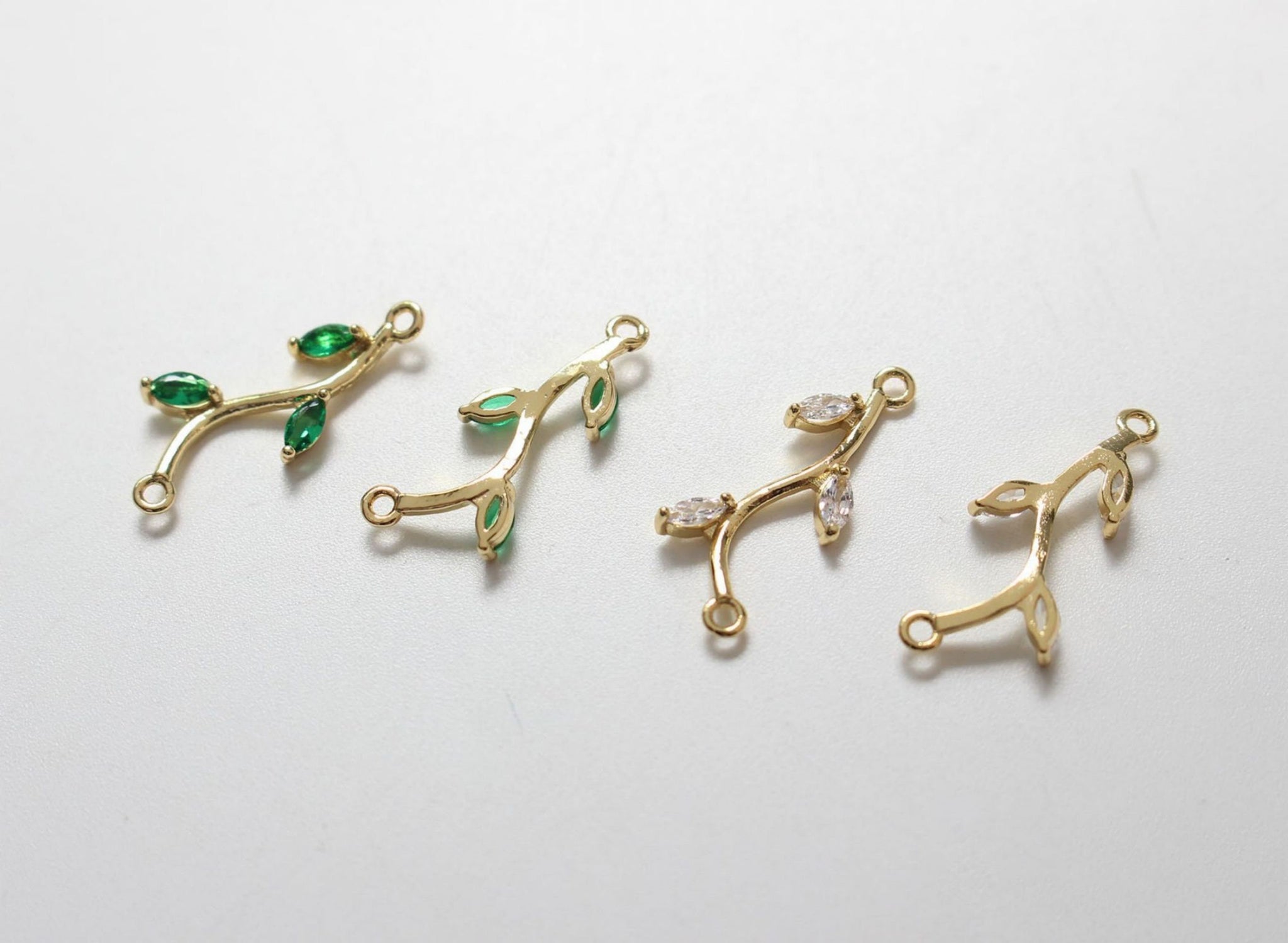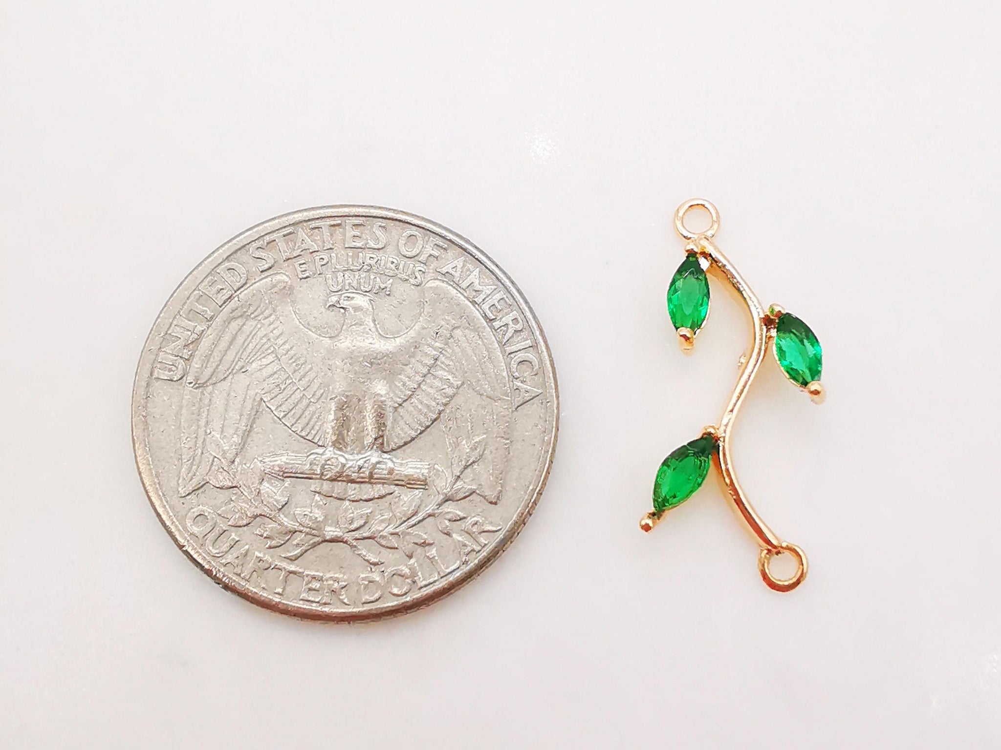 CZ Pave Leaf Connector, Cubic Zircon Crystal Leaf Pendant, Bracelet Necklace Pendant, 14K Gold Plated Charm,...
