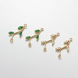 CZ Pave Leaf Connector, Cubic Zircon Crystal Leaf Pendant, Bracelet Necklace Pendant, 14K Gold Plated Charm, Jewelry Findings B027-ZX7034