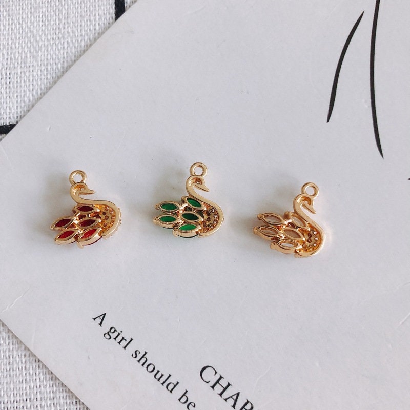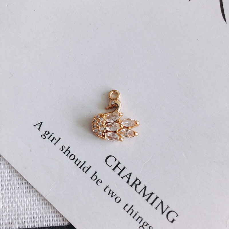 CZ Pave Little Swan Charm, Cubic Zircon Crystal Swan Pendant, Bracelet Necklace Pendant, 14K Gold Plated Charm, Jewelry Findings MY052-F234