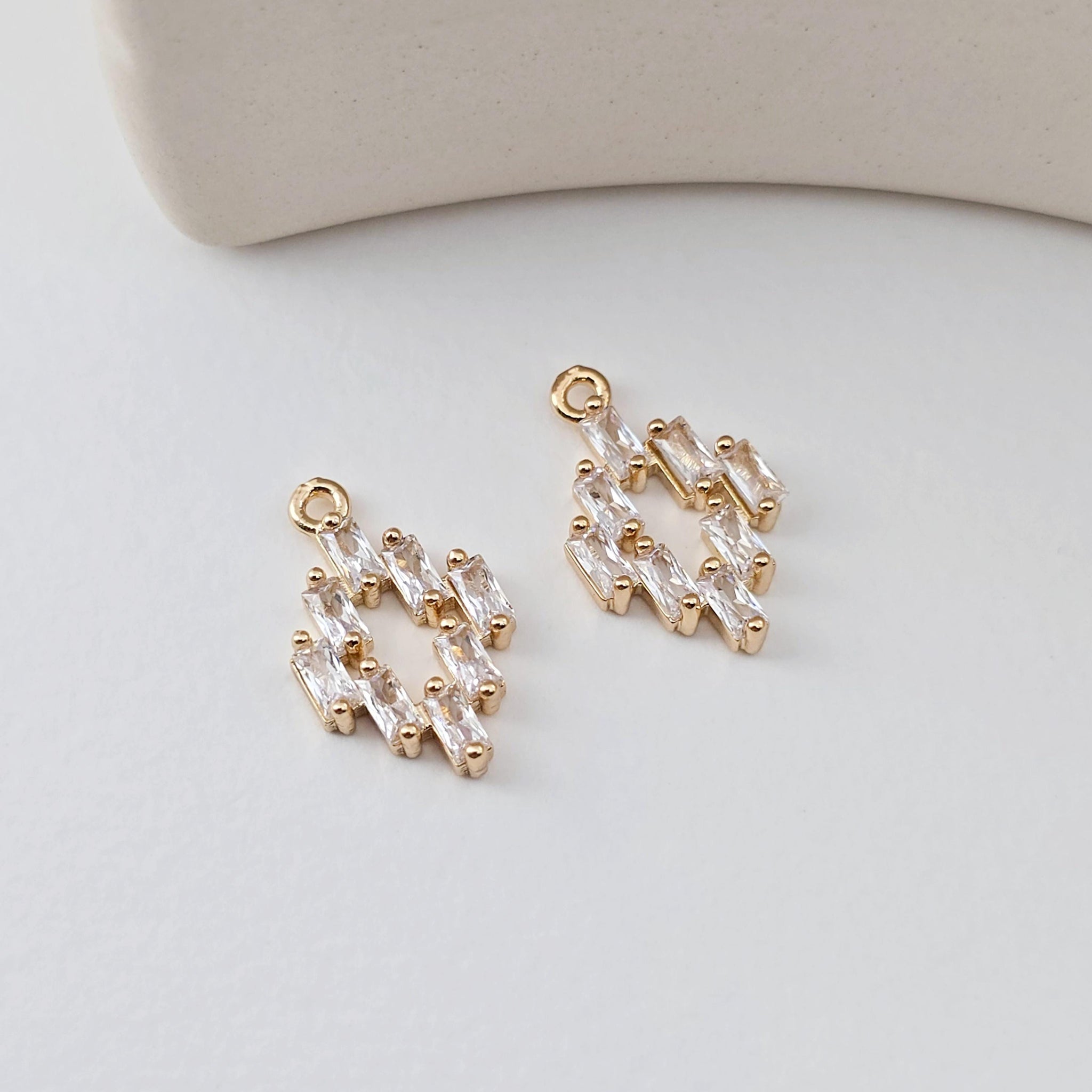 CZ Pave Rhombic Charm, Cubic Pendant, Earring Connectors, Real Gold Plated Brass Earring Charms, Jewelry Findings...