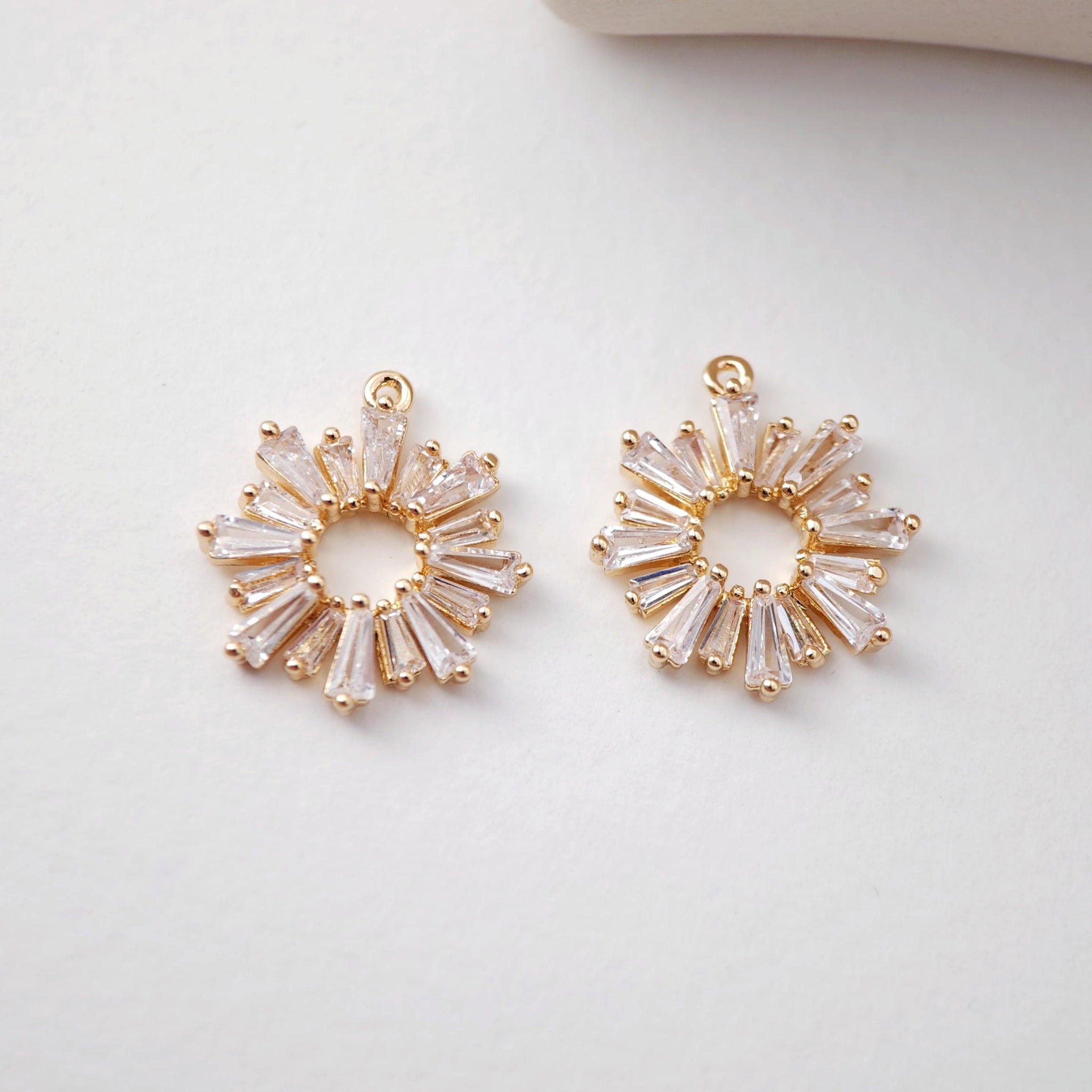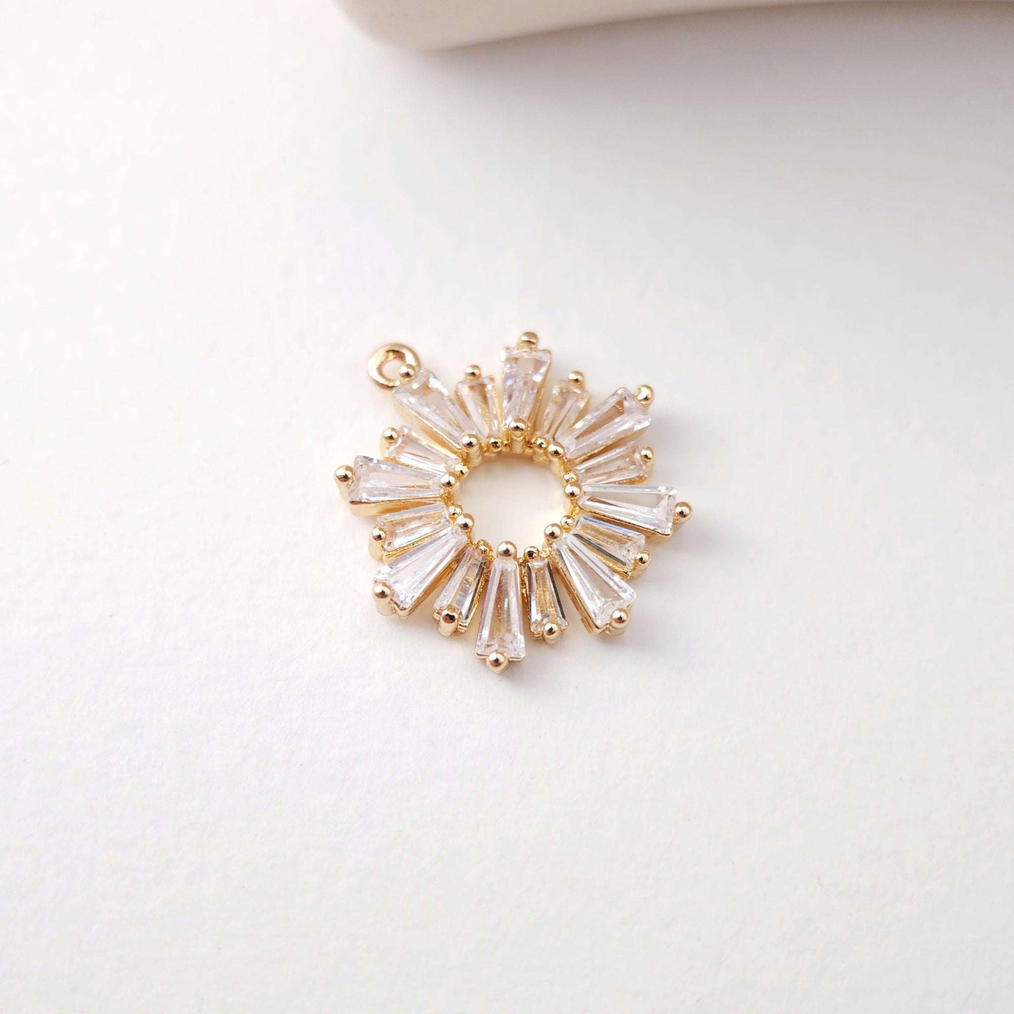 CZ Pave Sunflower Charm, Cubic Pendant, Real Gold Plated Brass Earring Charms, Jewelry Findings D0073