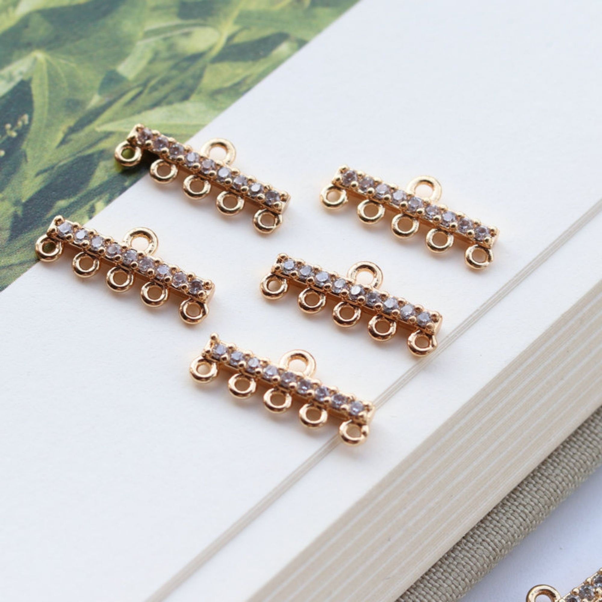CZ Pave T-shaped Charm, Cubic Zircon Crystal Pendant, Bracelet Necklace Pendant, 14K Real Gold Plated, Jewelry...
