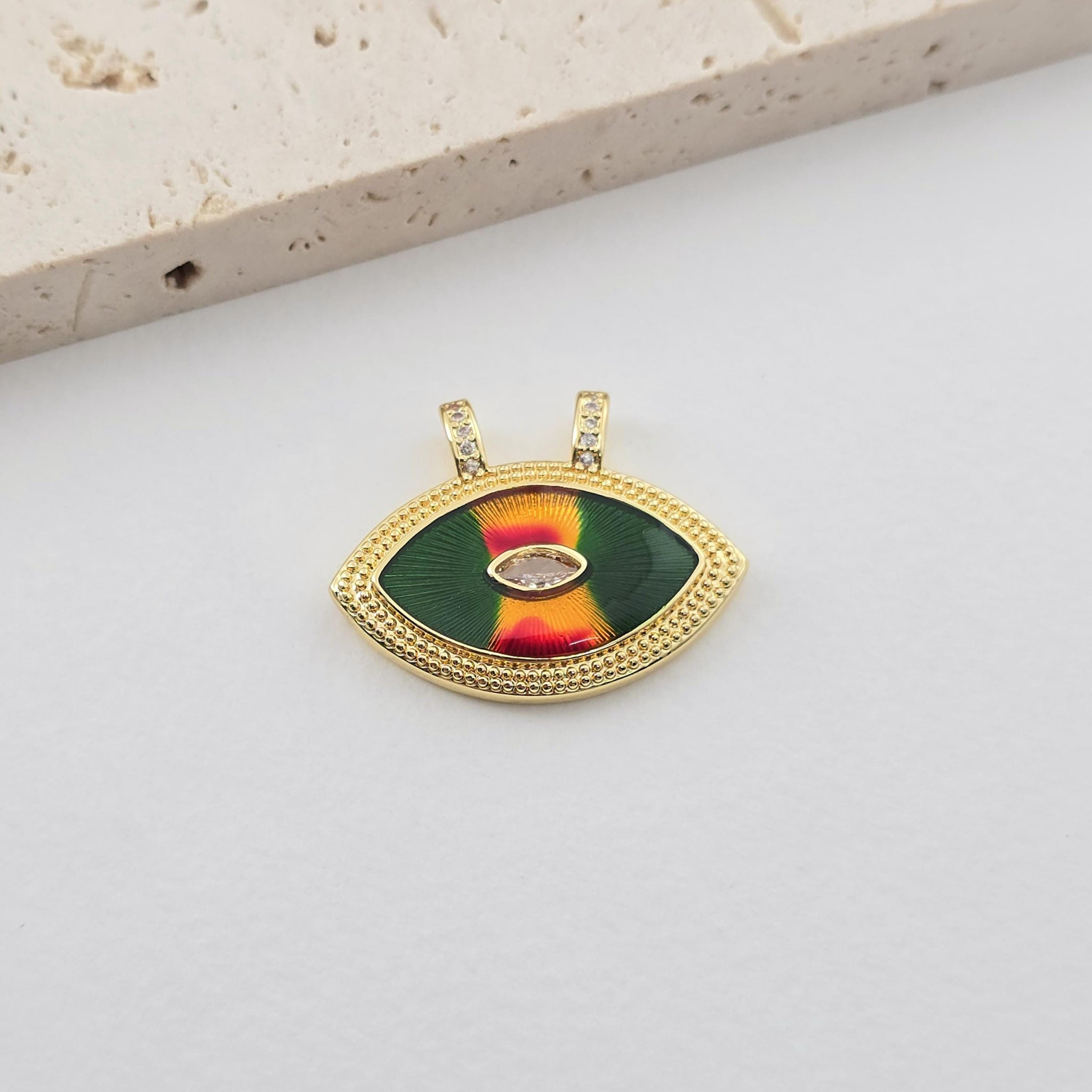 Enamel Evil Eye Charm, 18K Gold Plated Eye Pendant, CZ Pave Charm, Necklace Making Charm, Jewelry Findings S1286