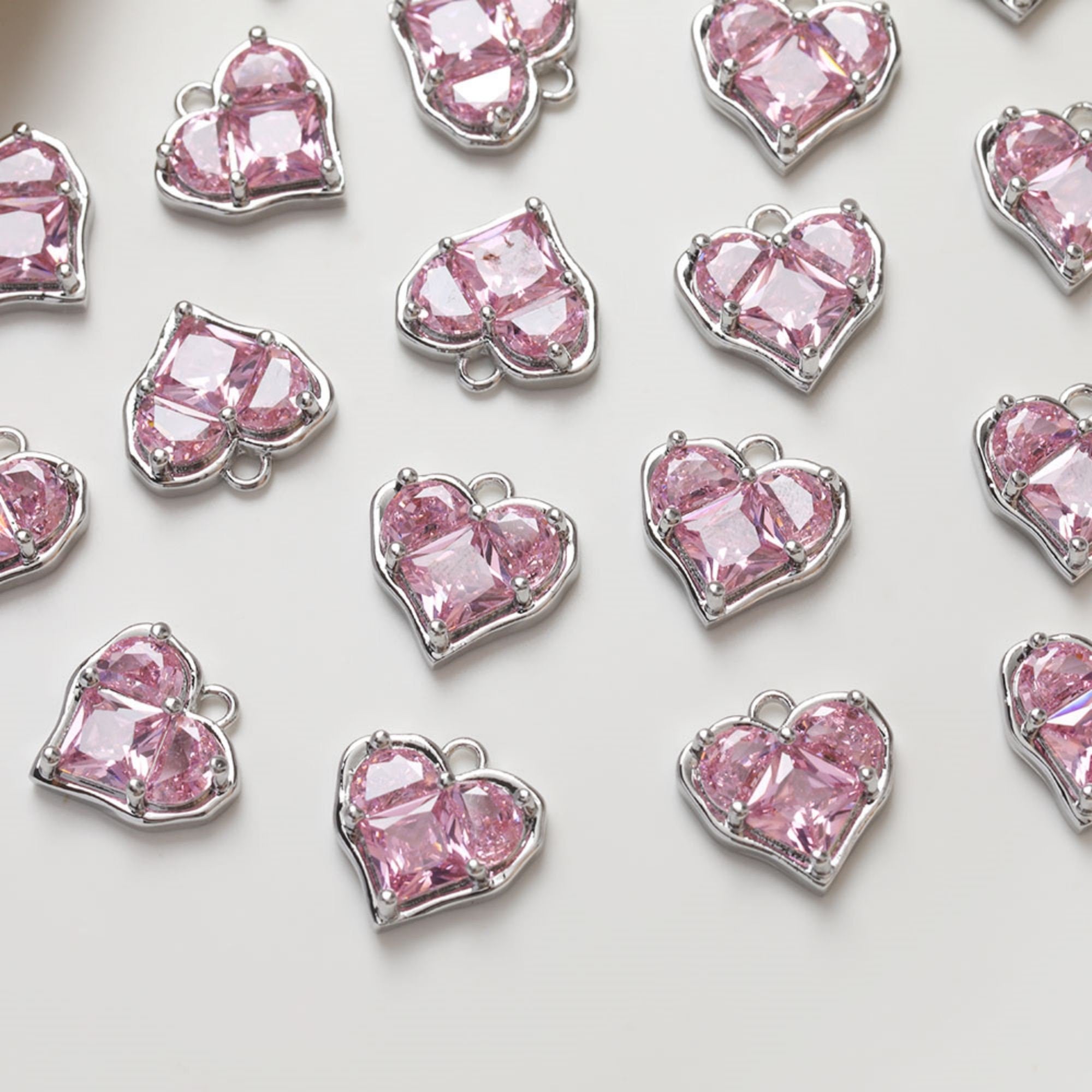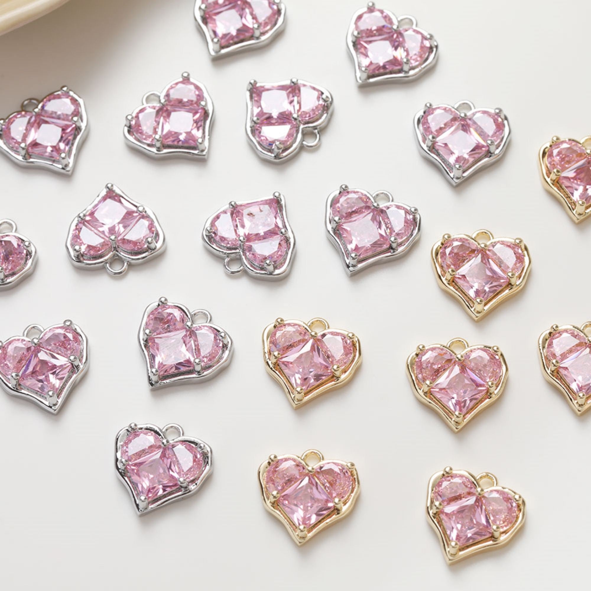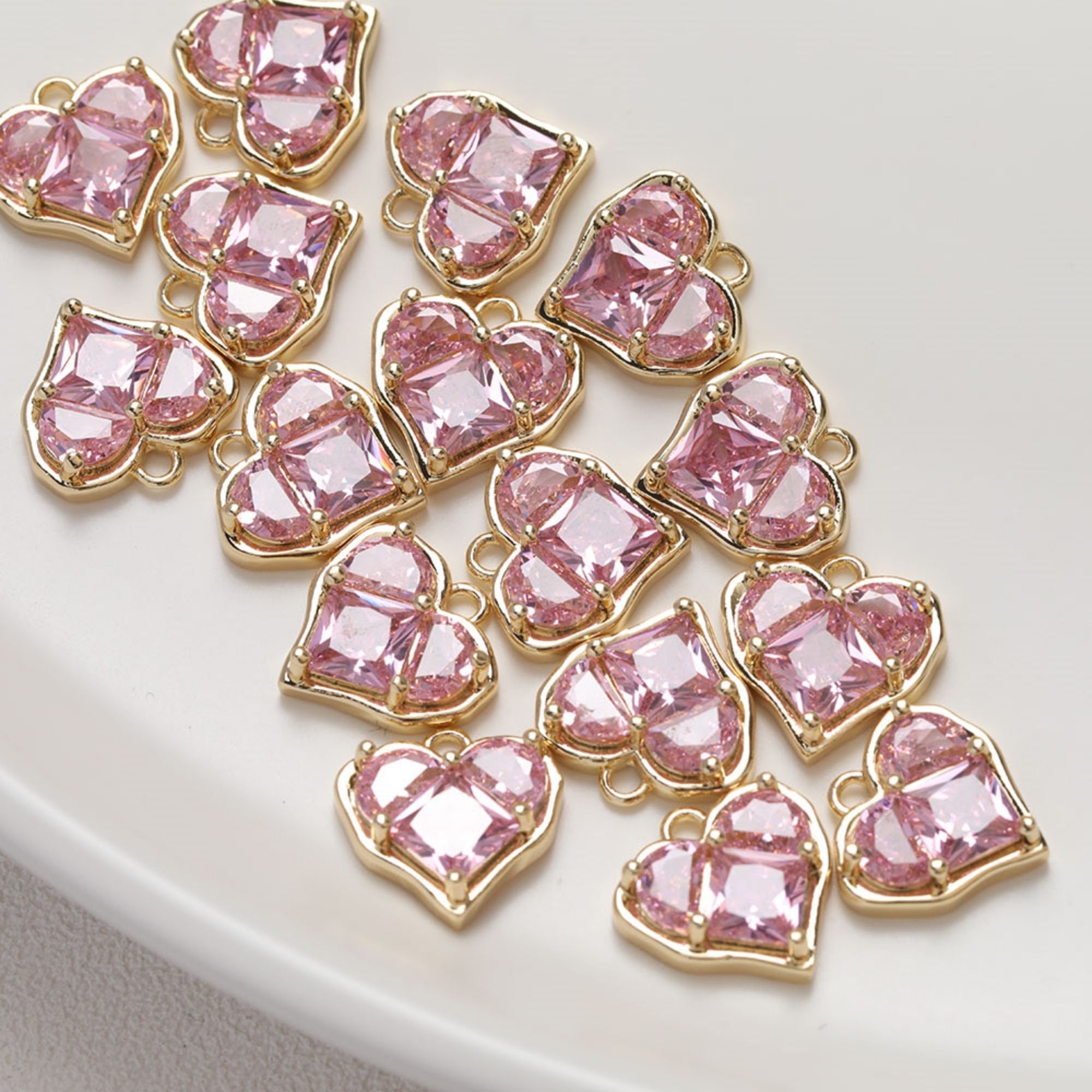 Heart Charms, Pink Cubic Charm, 18K Gold Plated CZ Pave Love Pendant, Necklace Making Pendants, Jewelry...