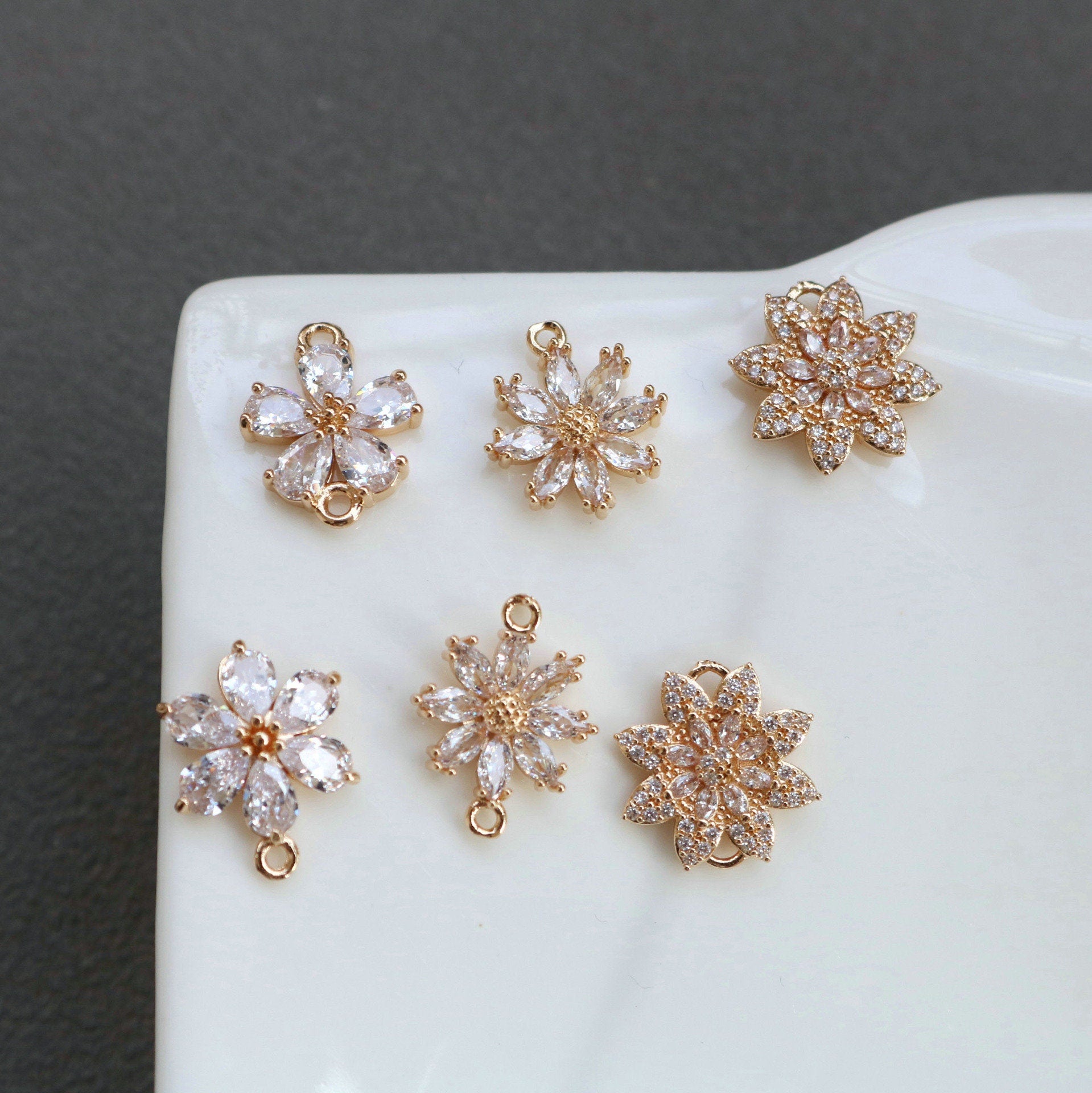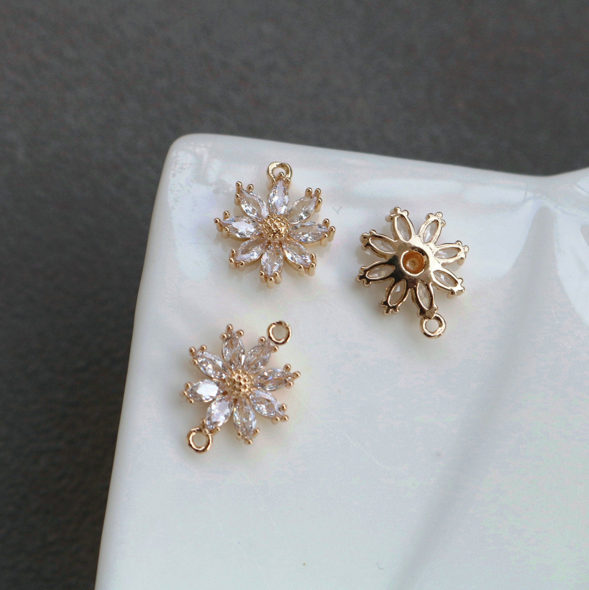 Sun Flower Charm, Cubic Zircon Crystal Flower Pendant, CZ Earring Charms,  Gold Plated Brass Earring Charms, Jewelry Findings HL014-F179