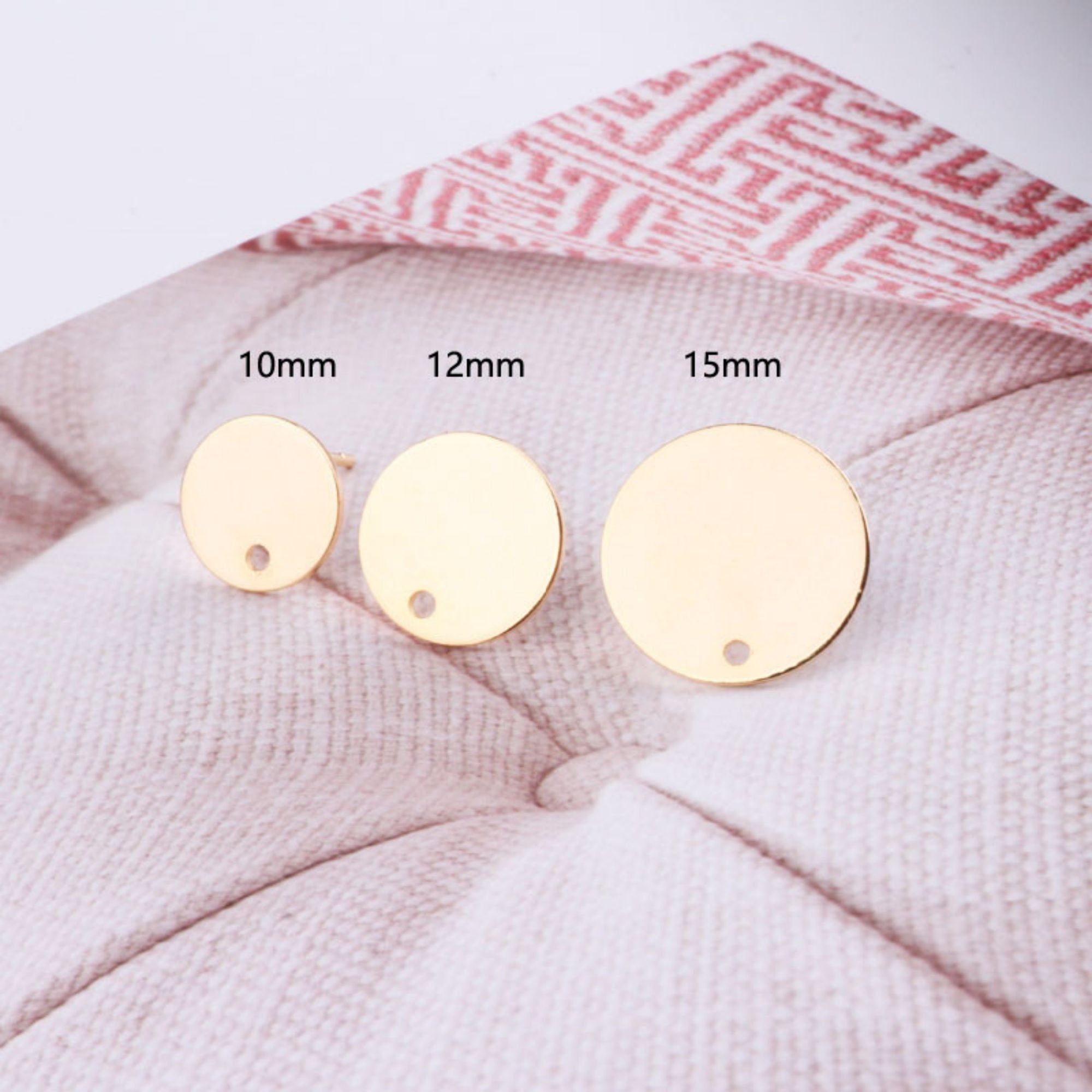 10pcs 18K Gold Round Post With Loop, Round Stud Earring Nickel Free, 10mm, 12mm, 15mm, Hypoallergenic Earring Findings QR024