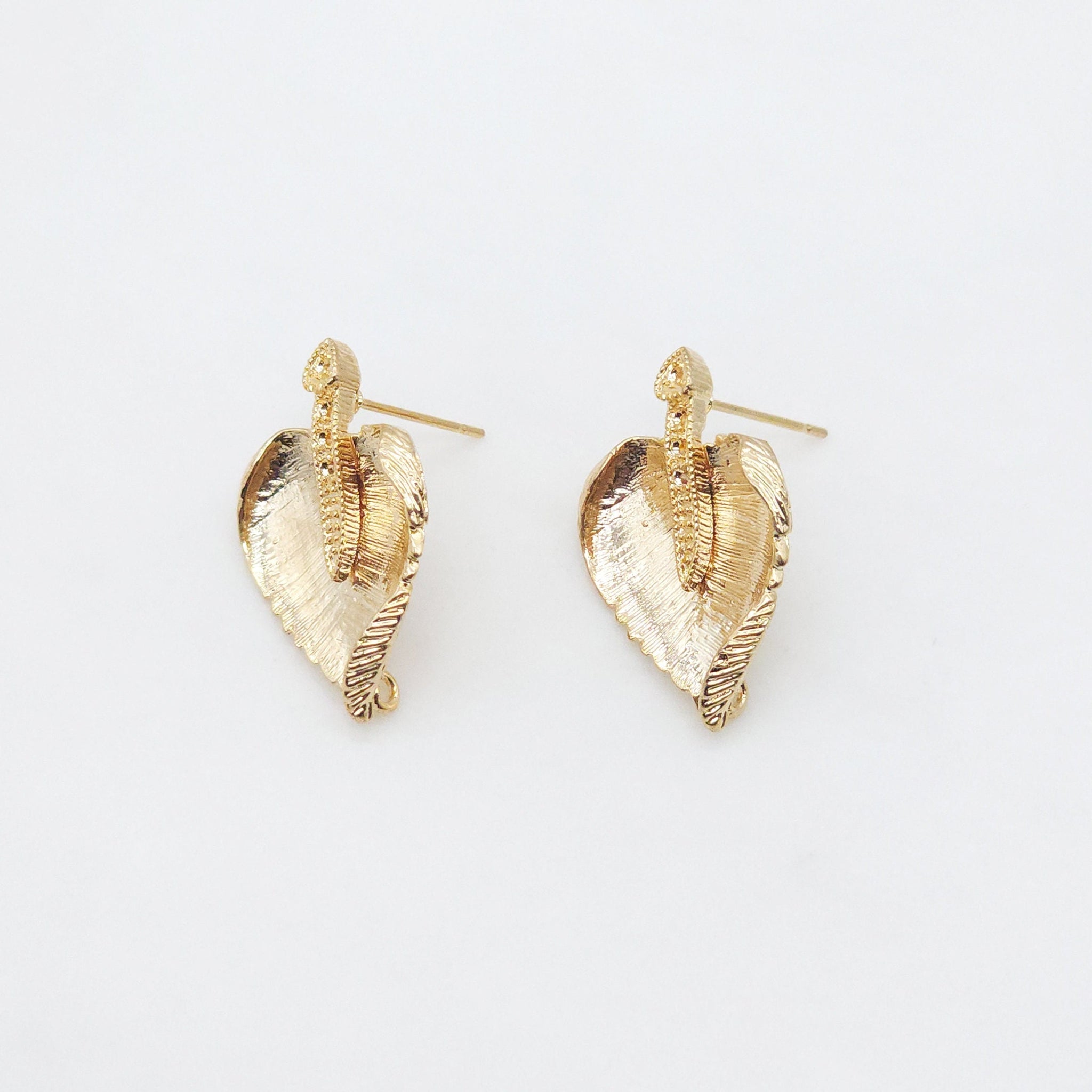 10pcs Gold leaves Earring Post With Loop, Nickel Free Earrings, Ear Stud Loop, Hypoallergenic Earring Findings...