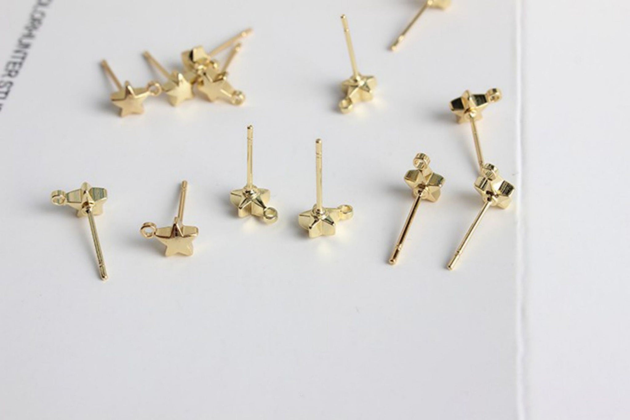 10pcs Gold Star Earring Post With Loop, S925 Silver Ear Stick, Nickel Free Earrings, Ear Stud Loop, Hypoallergenic Earring Findings GZ136