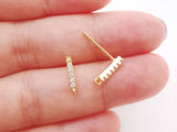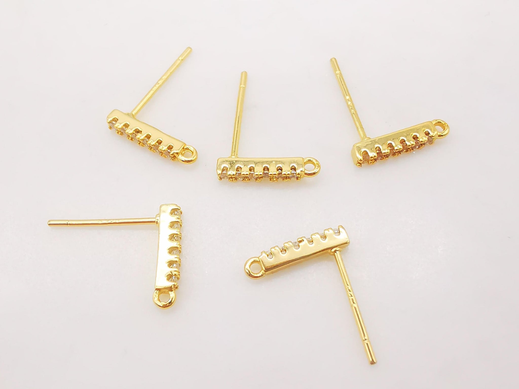 10PCS Rectangle Ear Post with Loops, Nickel Free, Micro CZ Pave, 11x2mm, 18K Gold Plated Stud Earring Finding S271