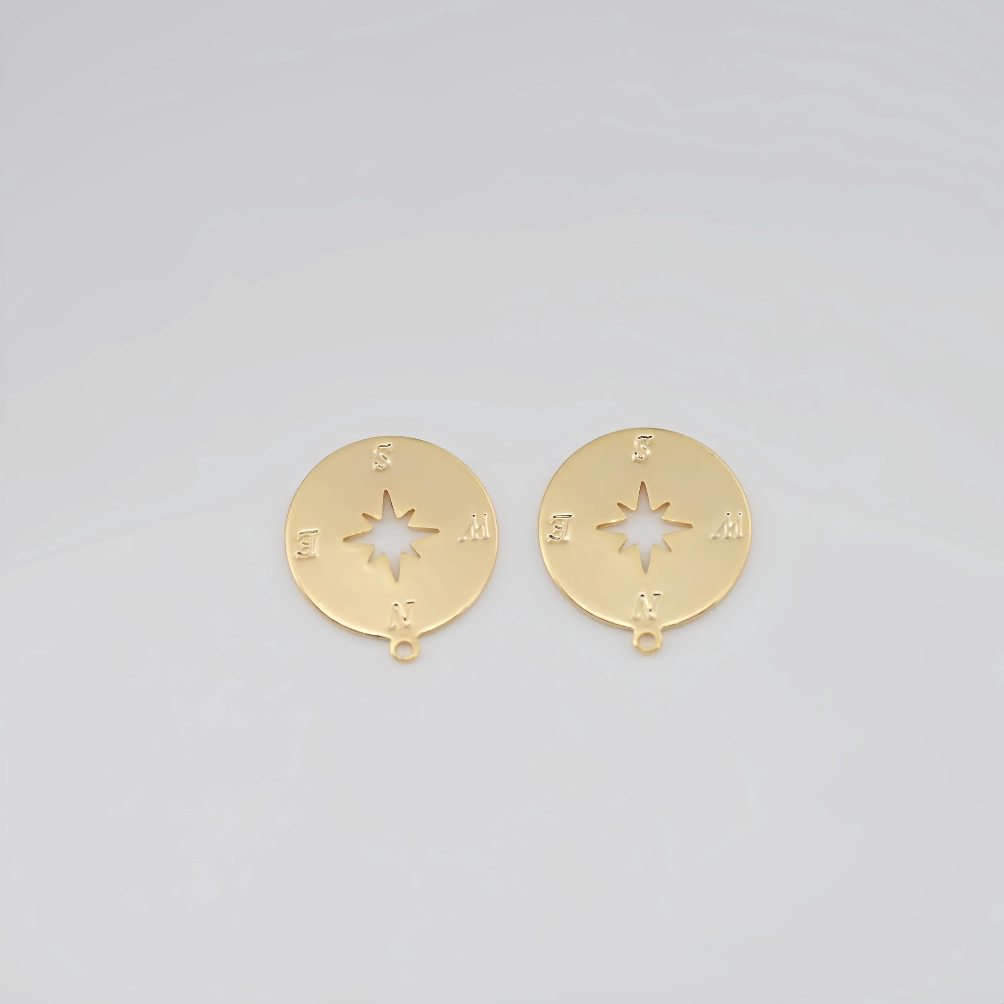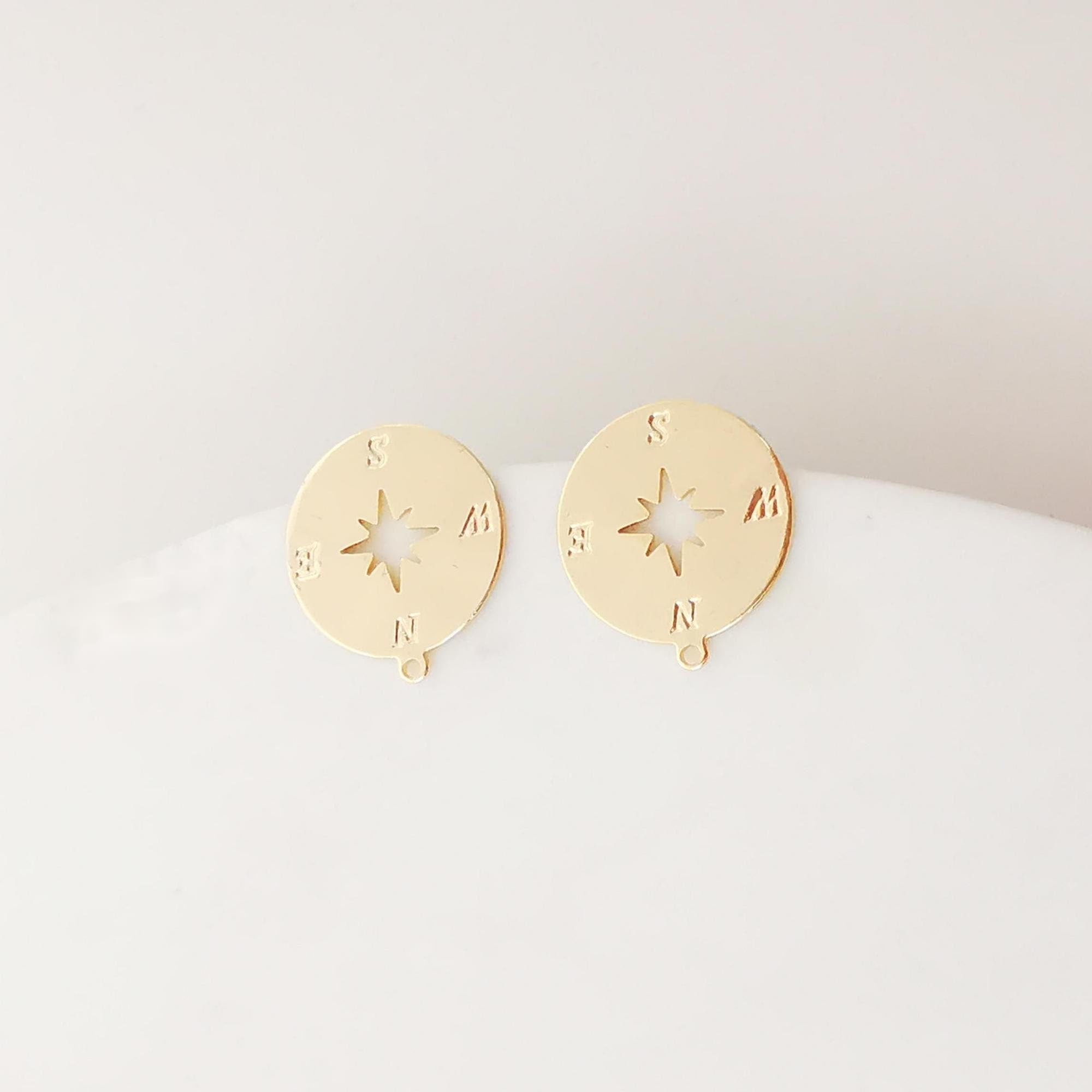 10pcs Round Earring Post With Loop, Openwork Star, 18K Gold Nickel Free Earrings, Ear Stud with Loop, Hypoallergenic Earring Findings ZX011