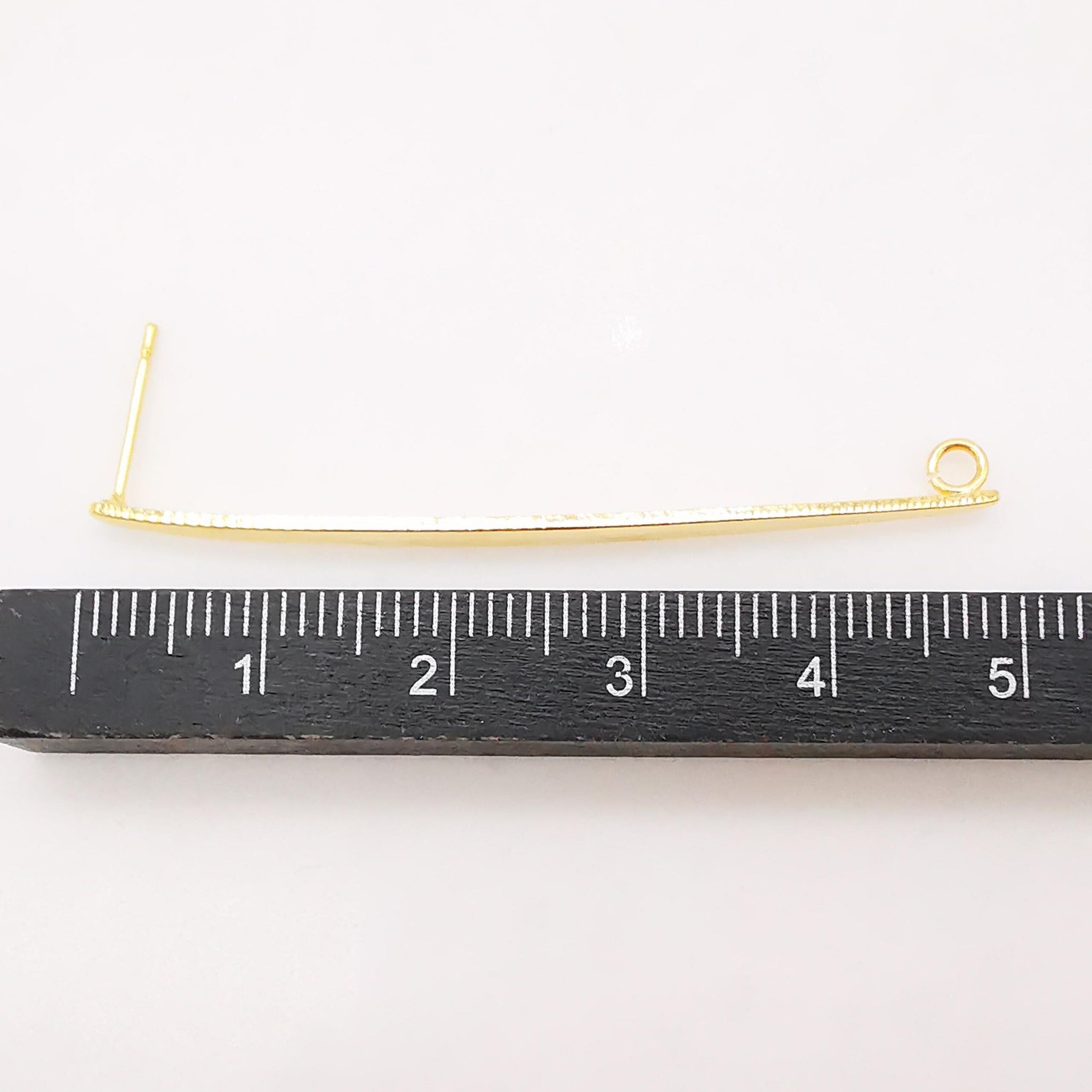 10pcs Shiny Gold Long Stud Earrings Post With Loop, Glossy Stud Earring Nickel Free, 52mm, Hypoallergenic Earring Findings Z049