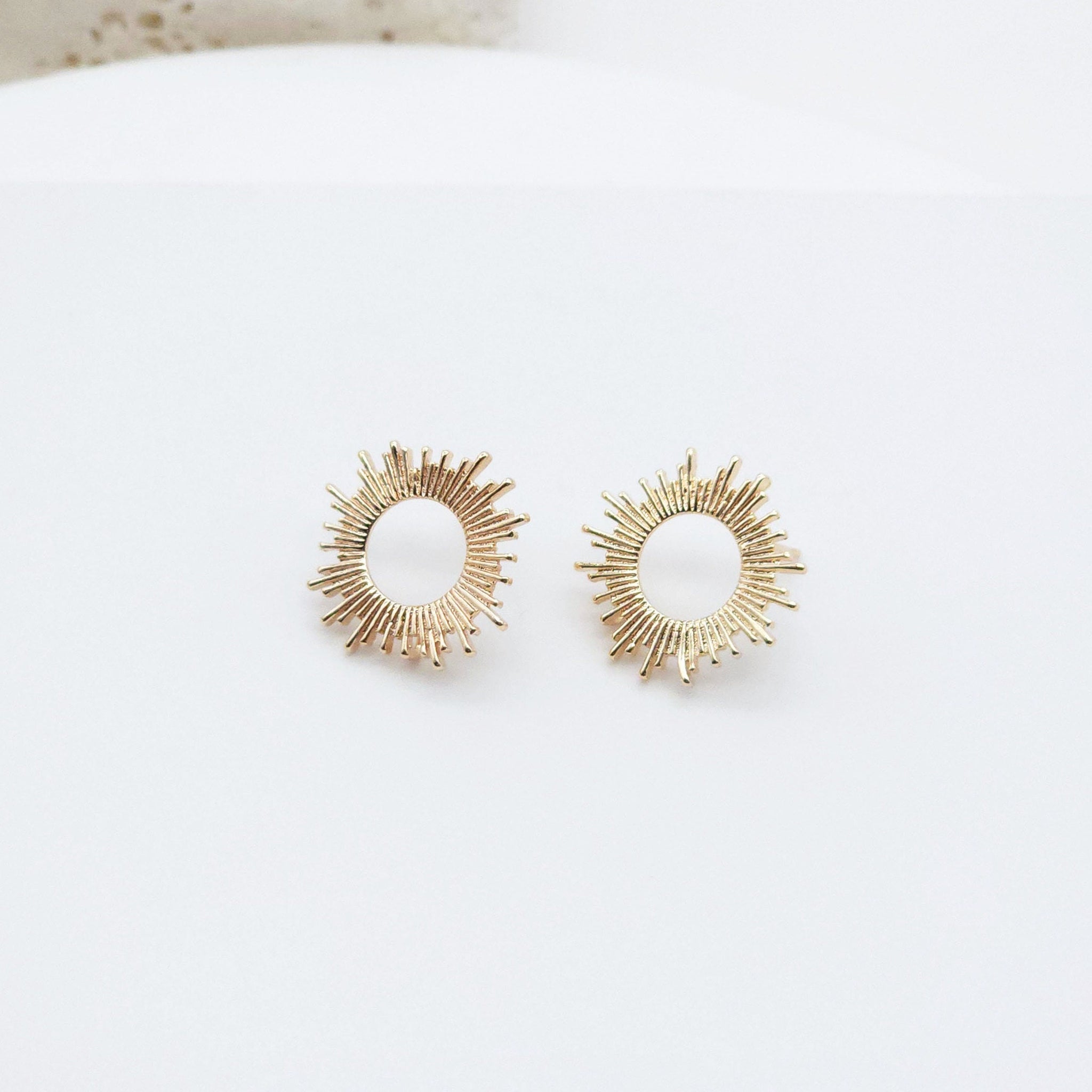 10pcs Sunshine Earring Post, 18K Gold Plated Stud Earring With Loop, Sunshine Ear Studs, Earring Finding ZX097