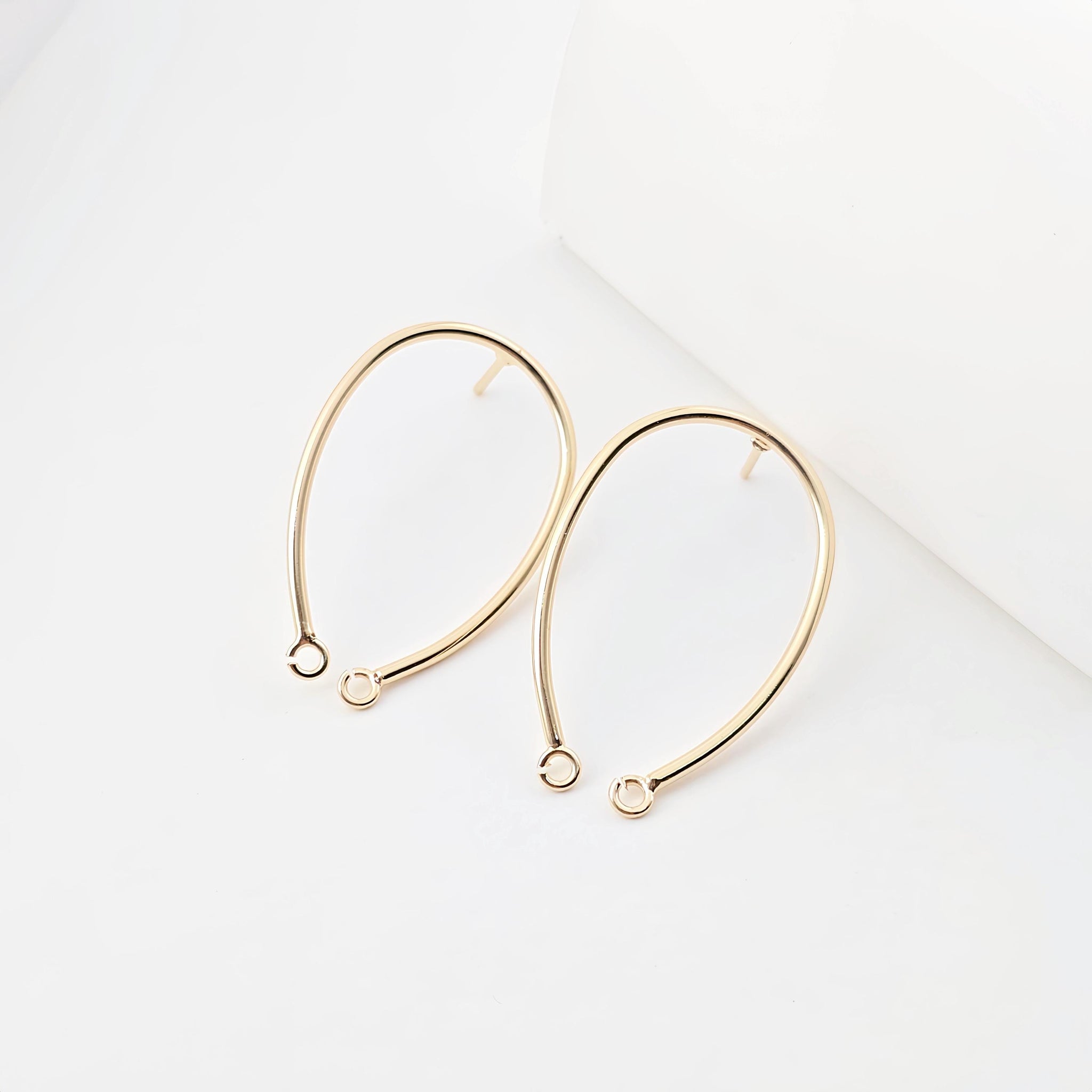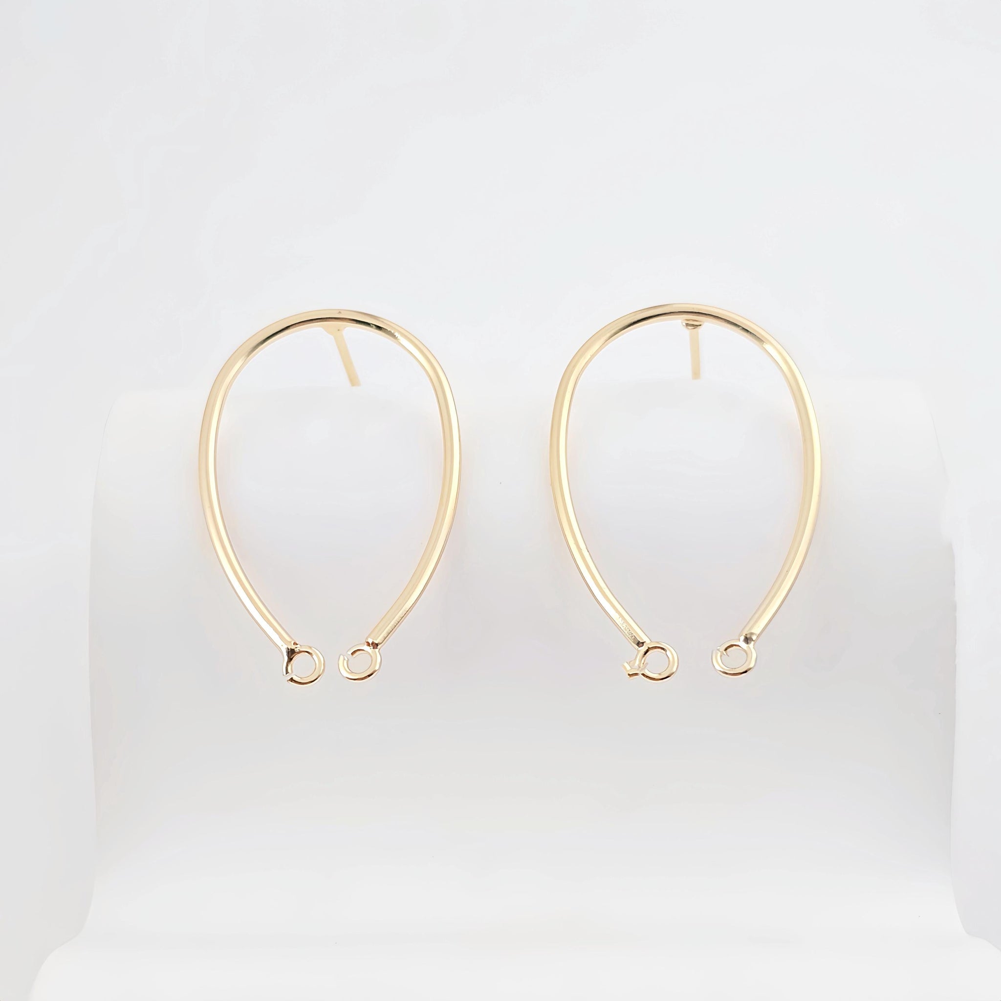 14K Gold U Shape Earring Post With 2 Loops, Arch Ear Studs, Nickel Free Earrings, Hypoallergenic Earring Findings ZX302