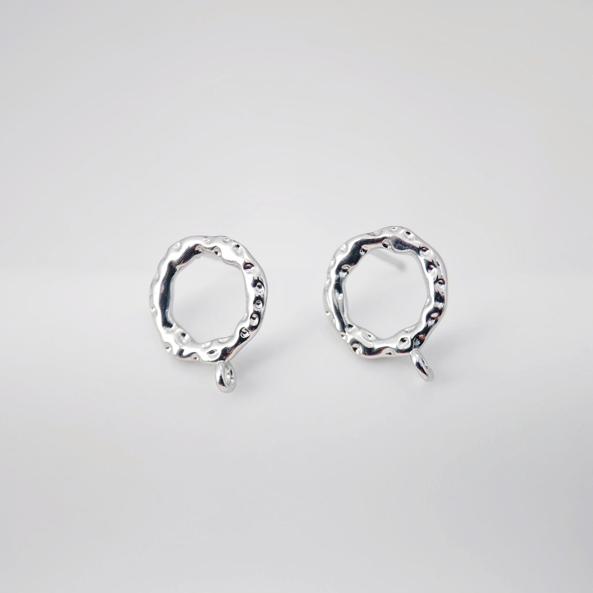 18K Gold Hammered Circle Post With Loop, S925 Silver Pin, Round Stud Earring Nickel Free, 14.6*11.5mm, Hypoallergenic Earring Findings D0231