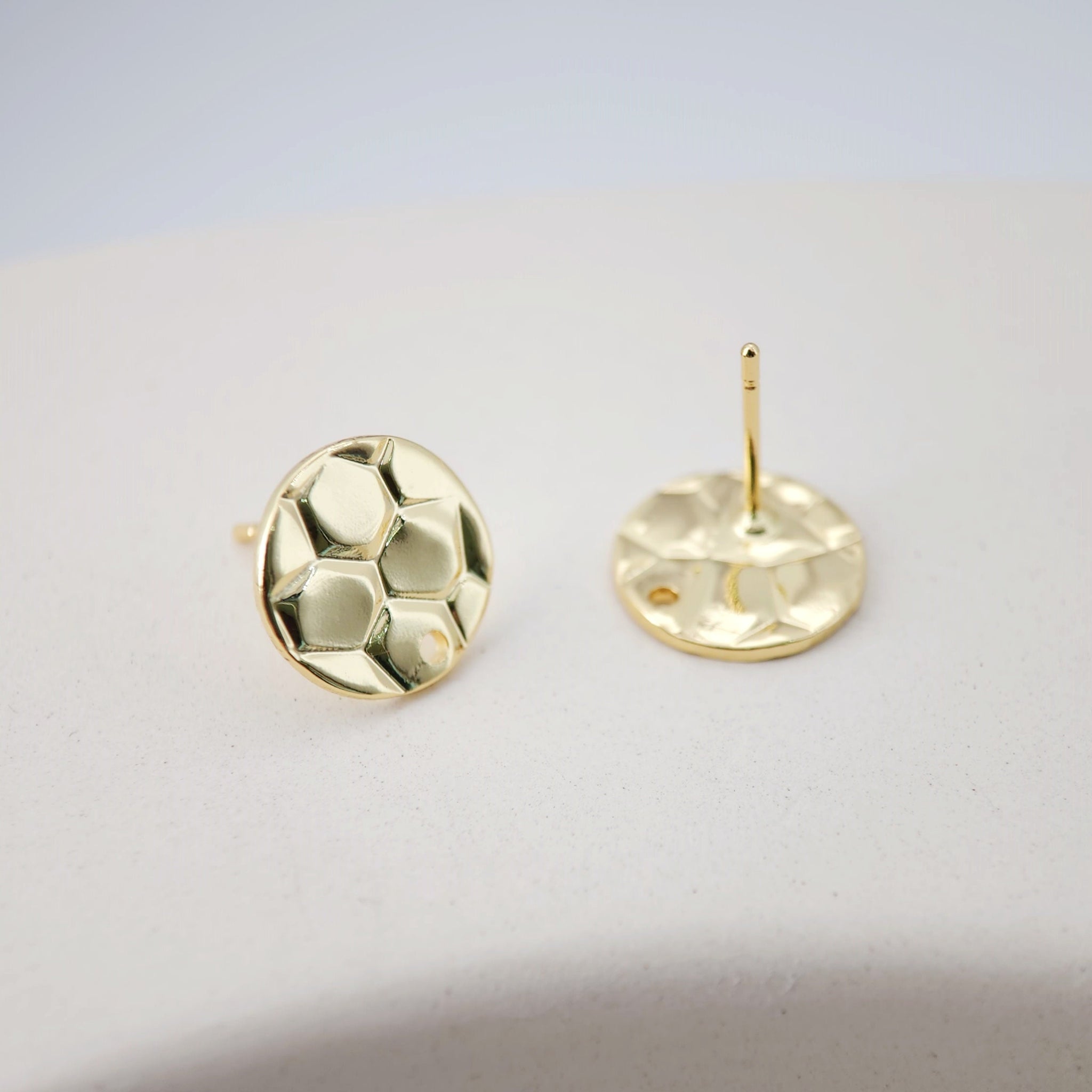 18K Gold Round Engraved Post With Loop, Round Stud Earring Nickel Free, 12.7mm, Hypoallergenic Earring Findings D0197