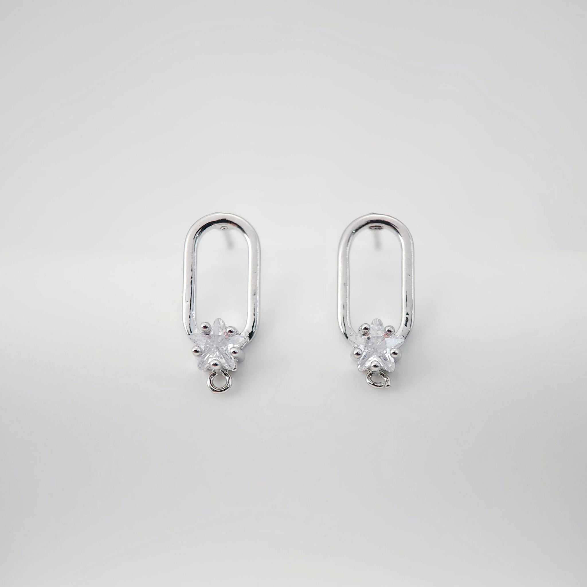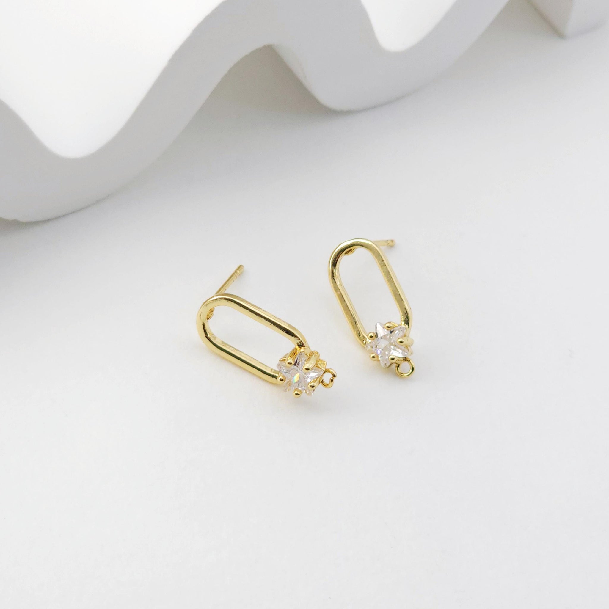 18K Gold Oval Post With Loop, CZ Pave, S925 Silver Pin, 17.7*7.4mm, Stud Earring Nickel Free, Hypoallergenic Earring Findings D0234